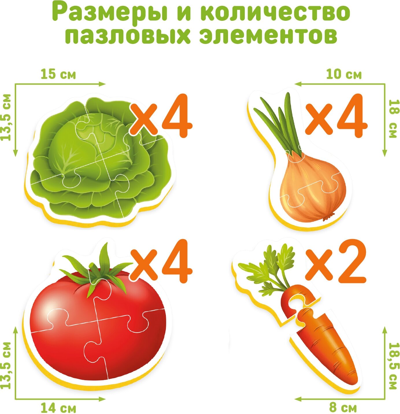 Пазлы для малышей "Овощи", 4 картинки, 13 элементов информация:
