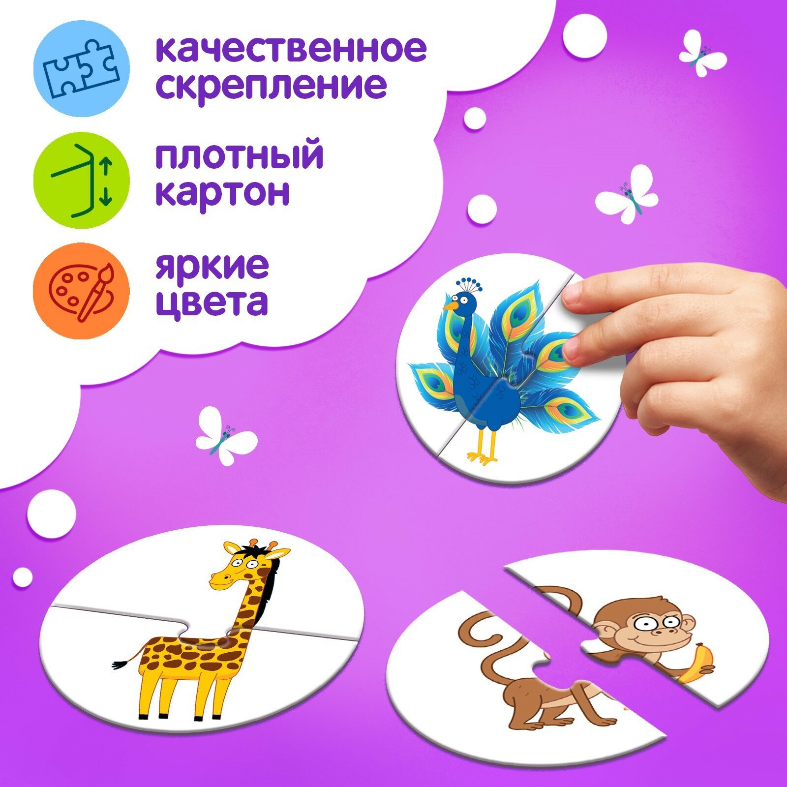 Деревянные пазлы для малышей картинки-половинки "Животные" 10 шт, крупные пазлы, обучающие карточки, развивающие игрушки для малышей