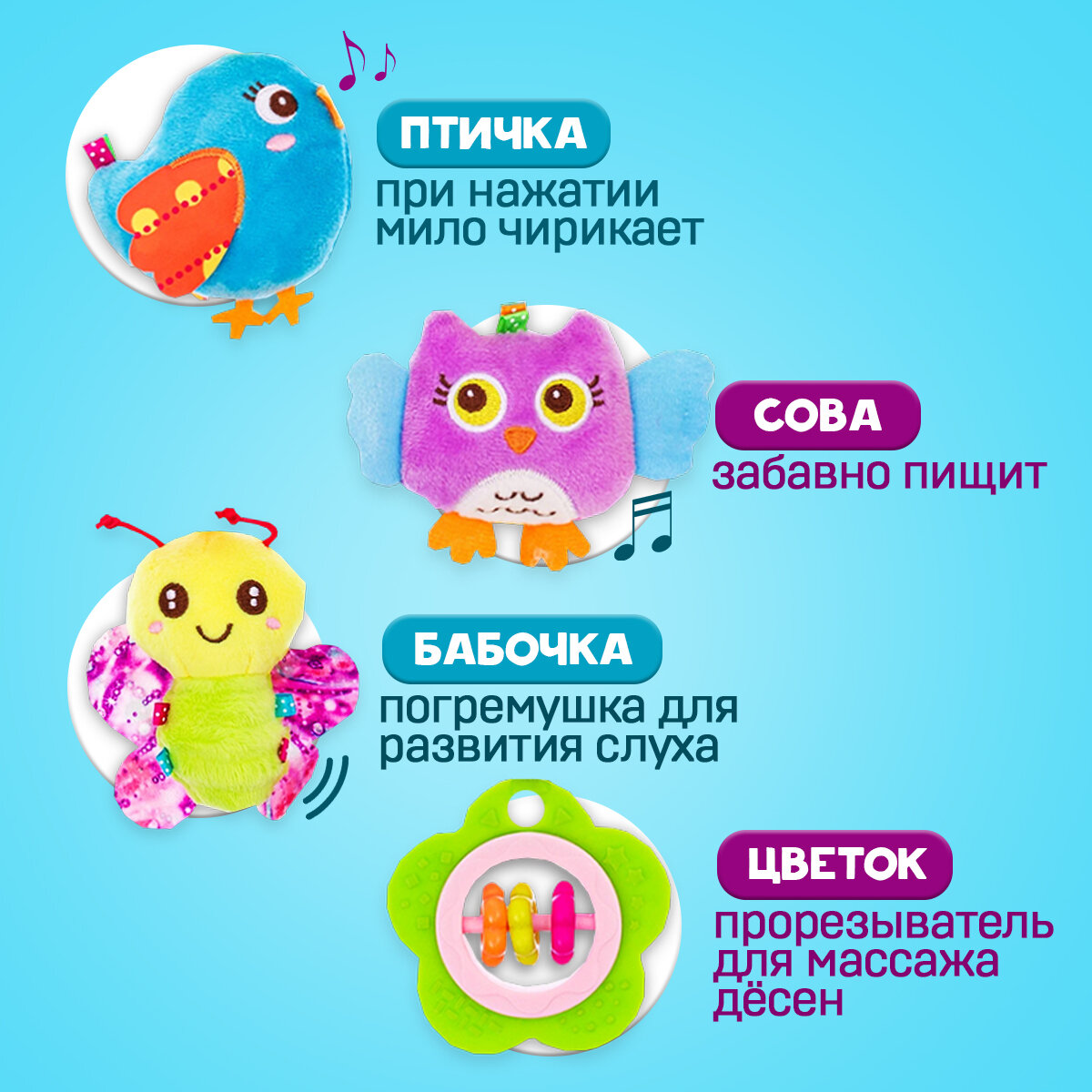 | Развивающие элементы | пищалка, погремушка, прорезыватель, тактильные вставки, шуршащие и хрустящие элементы |