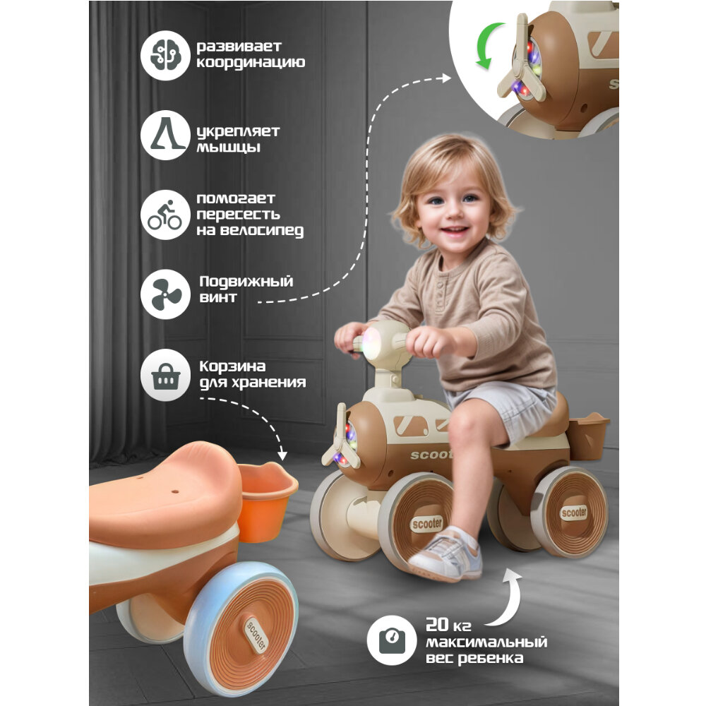 Детский беговел четырехколесный 58 х 25 х 43 см, машинка каталка для детей со светом и звуком информация:
