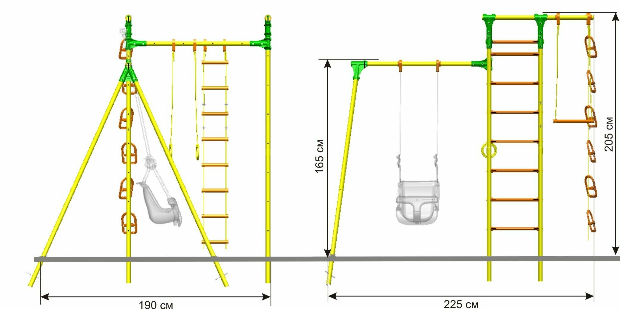 | В комплекте | веревочная лестница, гимнастические кольца, канатный лаз, лестница, трапеция |
