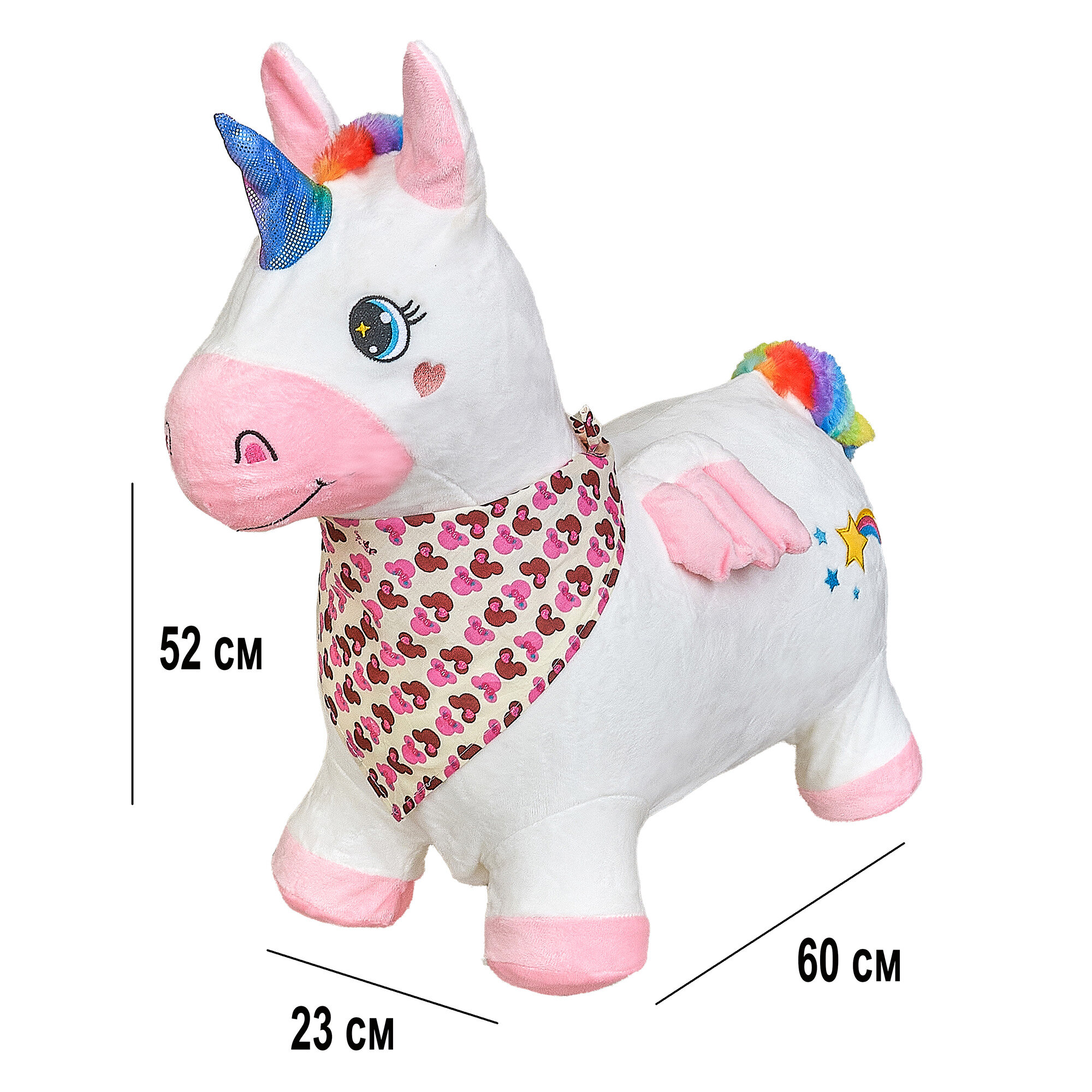 Прыгун Плюшевый Единорог, детская надувная развивающая игрушка-тренажер в чехле (в комплекте с насосом и платком-банданой) информация:
