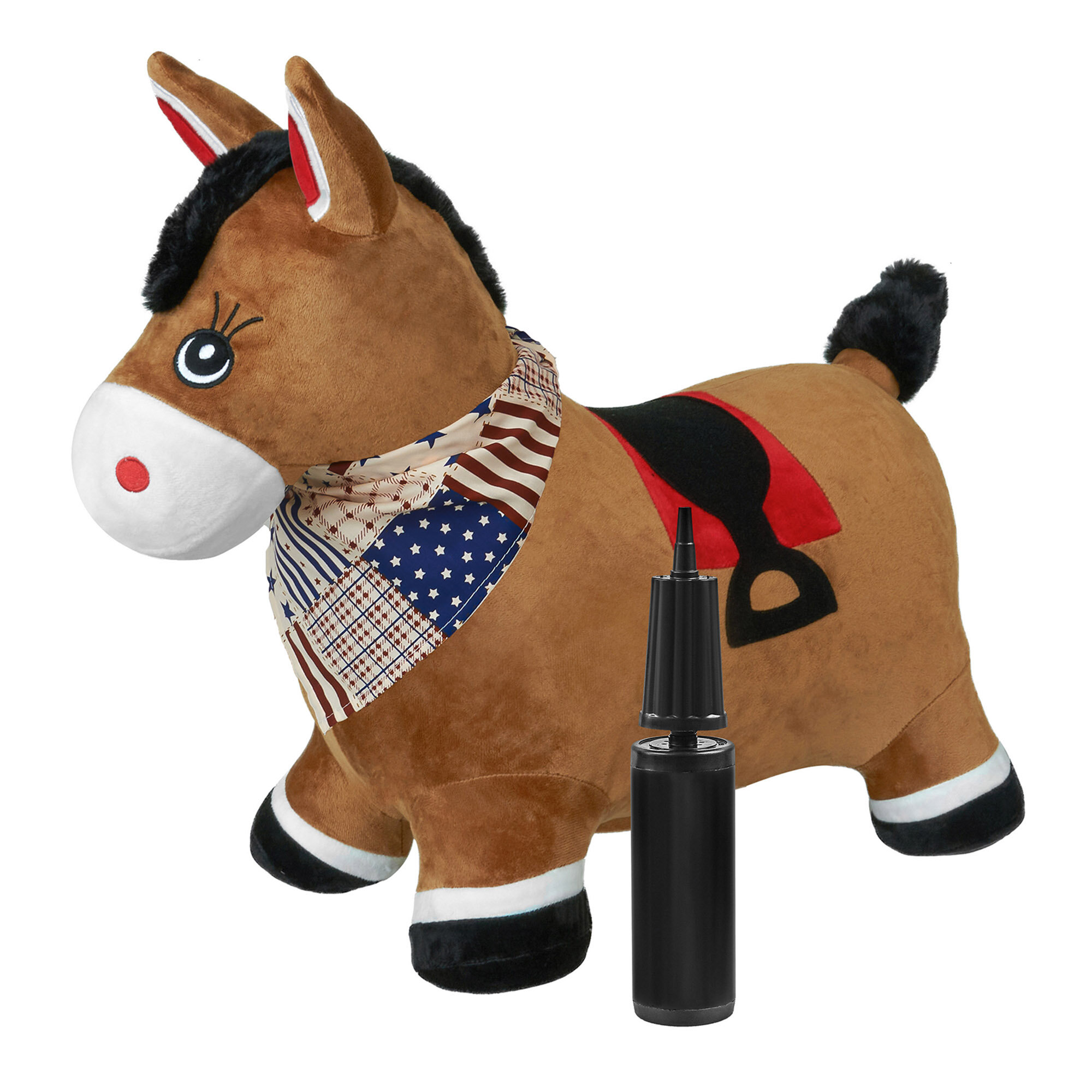 10 цен на Прыгун Плюшевая Лошадка Звёздочка, детская надувная развивающая игрушка-тренажер в чехле (в комплекте с насосом и платком-банданой)