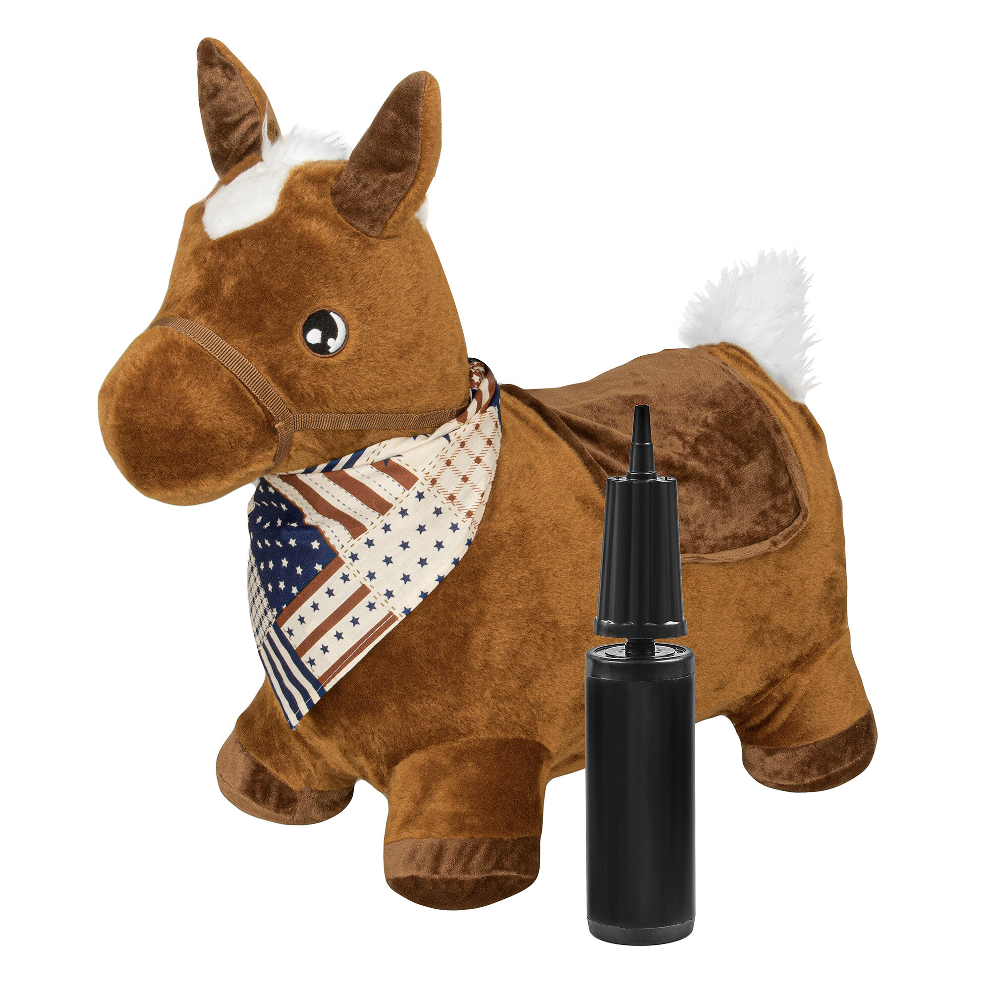 10 цен на Прыгун Плюшевая Лошадка, детская надувная развивающая игрушка-тренажер в чехле (в комплекте с насосом и платком-банданой)