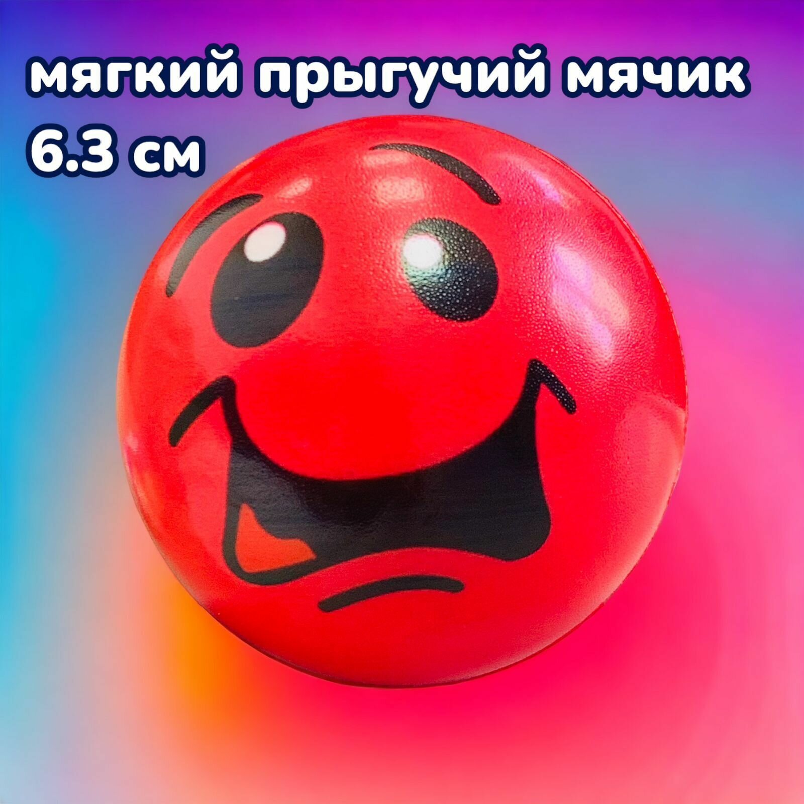 Мяч мягкий прыгучий детский 6.3 см Смайлик (Красный) информация: