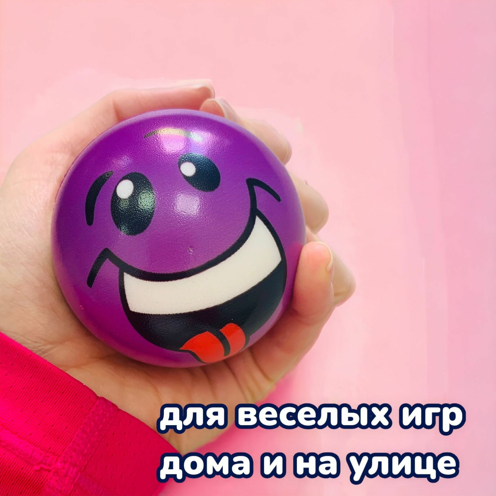 10 цен на Мяч мягкий прыгучий детский 6.3 см Смайлик (Фиолетовый)