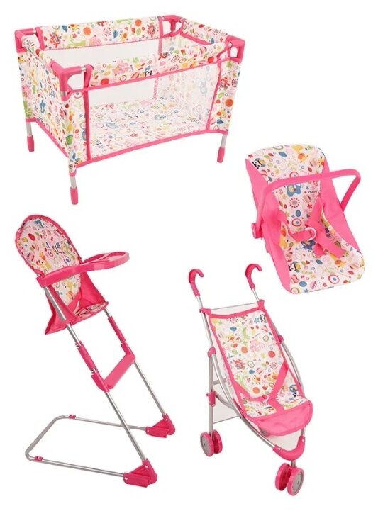 10 цен на Набор игровой для кукол 4в1: коляска, стульчик для кормления, манеж, переноска