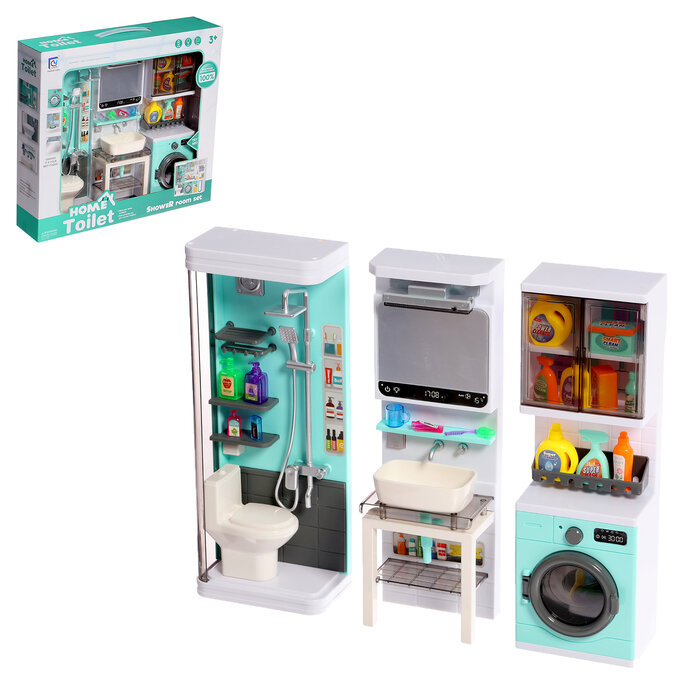 10 цен на Мебель для кукол КНР "Ванная комната": санузел, раковина, постирочная