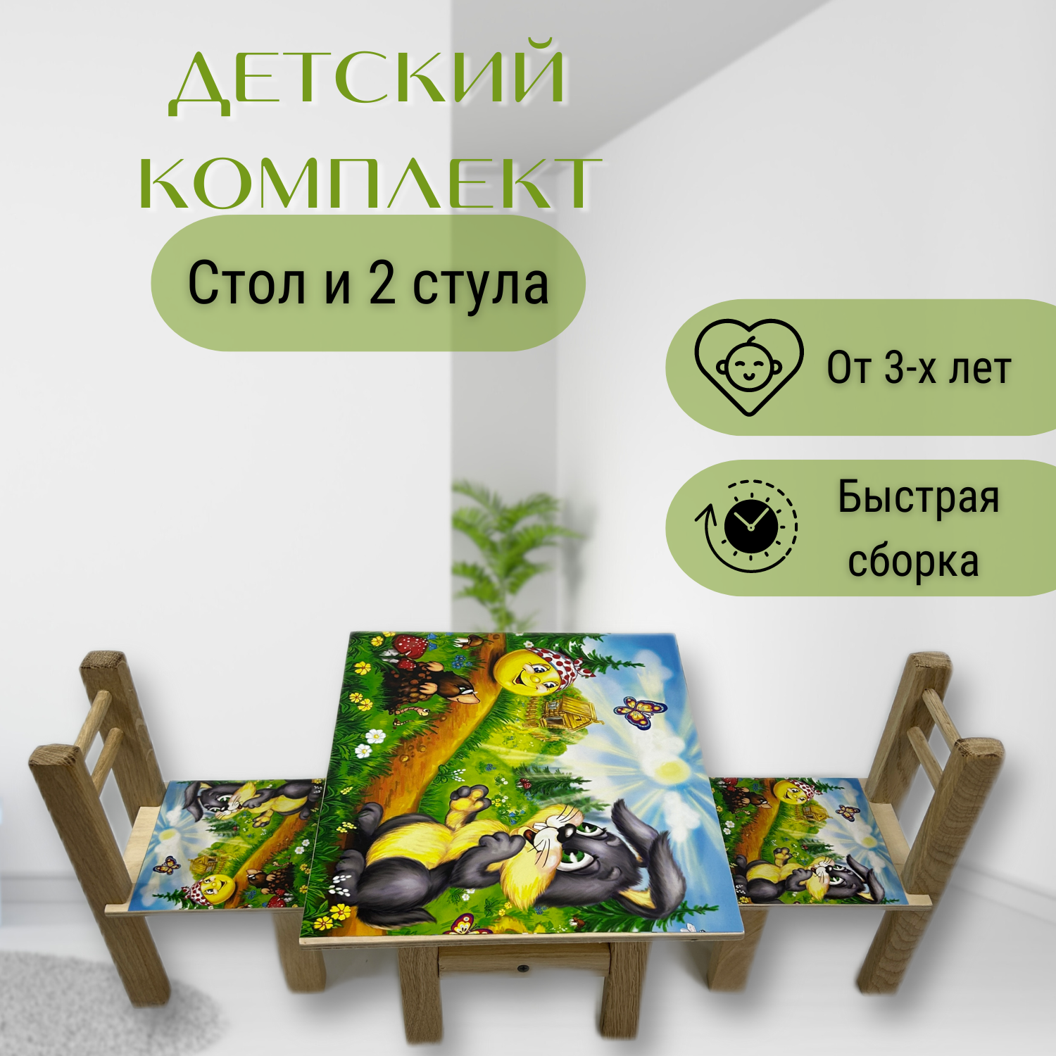 Набор стол и два стула для кукол (дерево) "Колобок" информация: