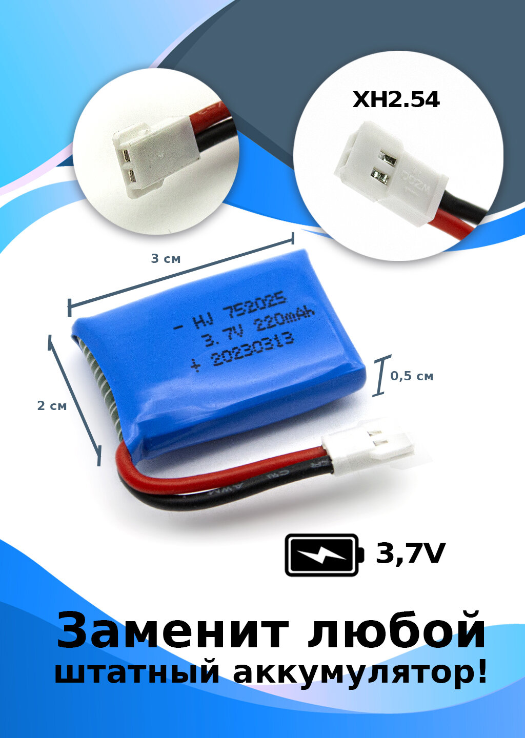 Отзывы на "Аккумулятор 3,7 В, 220 мАч, разъем XH2.54 подходит для Syma x13"