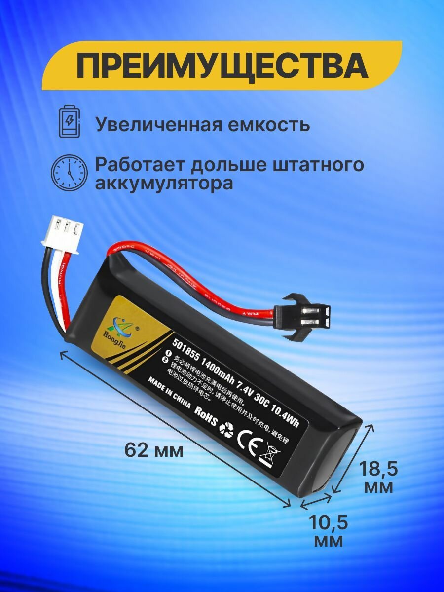 Аккумулятор Li-po 7,4V, 1400 мАч разъем SM для радиоуправляемых игрушек WPL Урал Газ 66, Страйкбола, Водяного пистолета 501855, 30C, 10.4Wh информация: