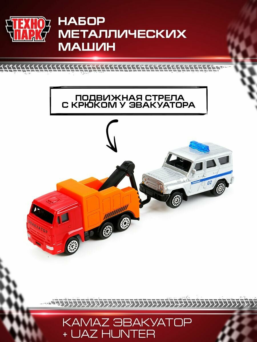 Машинки для мальчика Камаз Эвакуатор УАЗ Хантер Технопарк 7,5 см информация:
