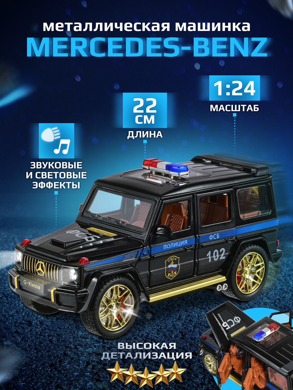 Металлическая машинка модель Mercedes-benz Мерседес G63 Гелик ФСБ 1:24 22 см информация: