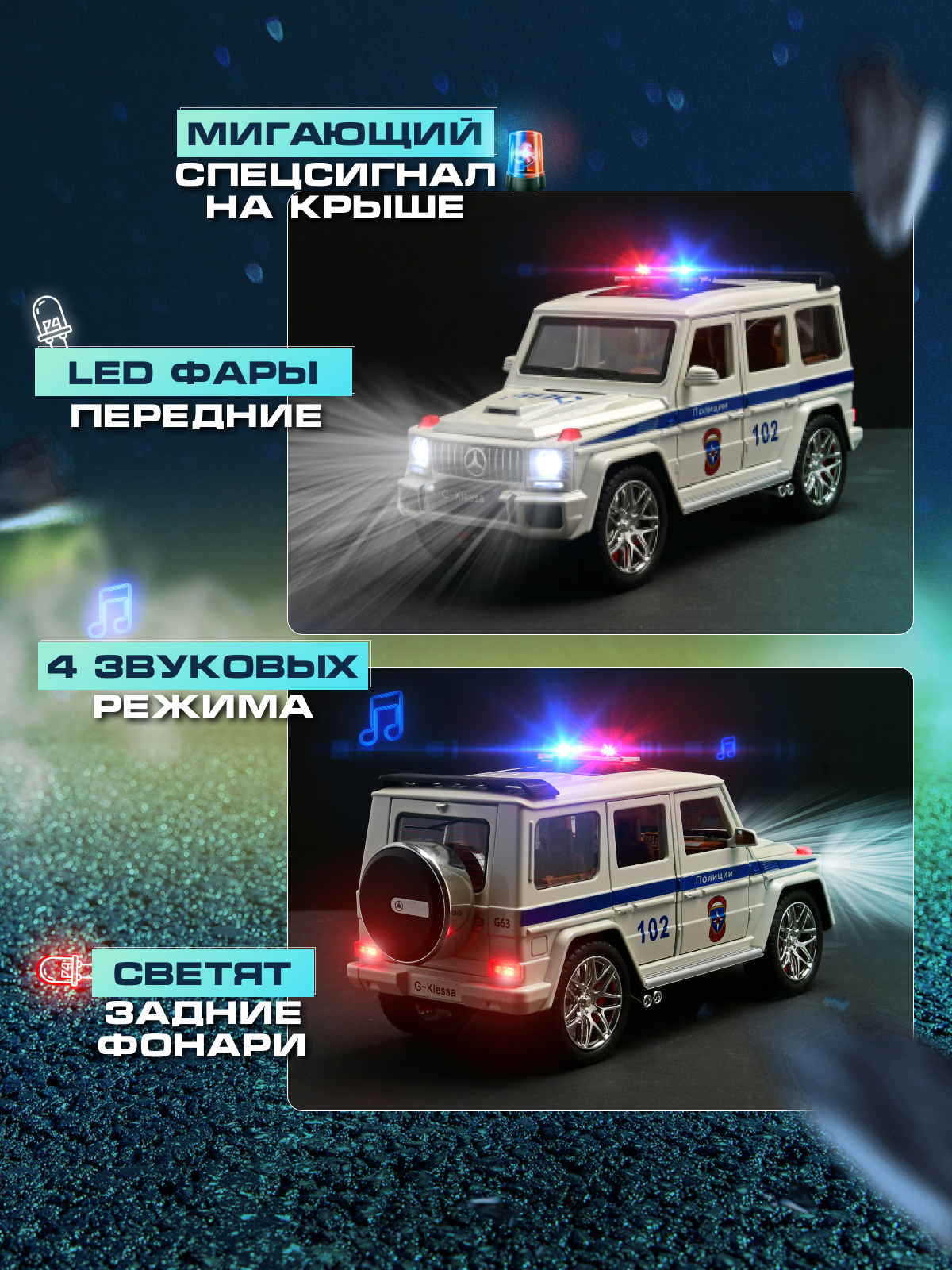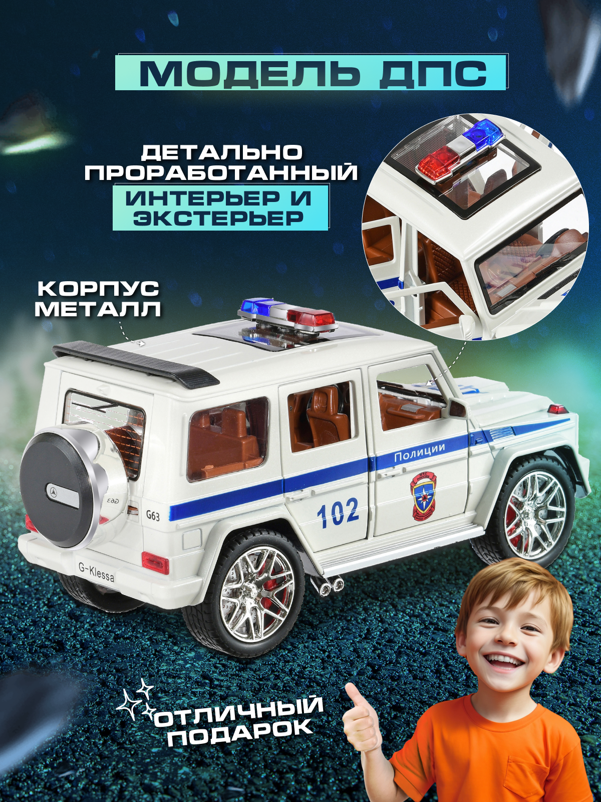 Металлическая машинка модель Mercedes-benz Мерседес G63 Гелик ДПС 1:24 22 см информация: