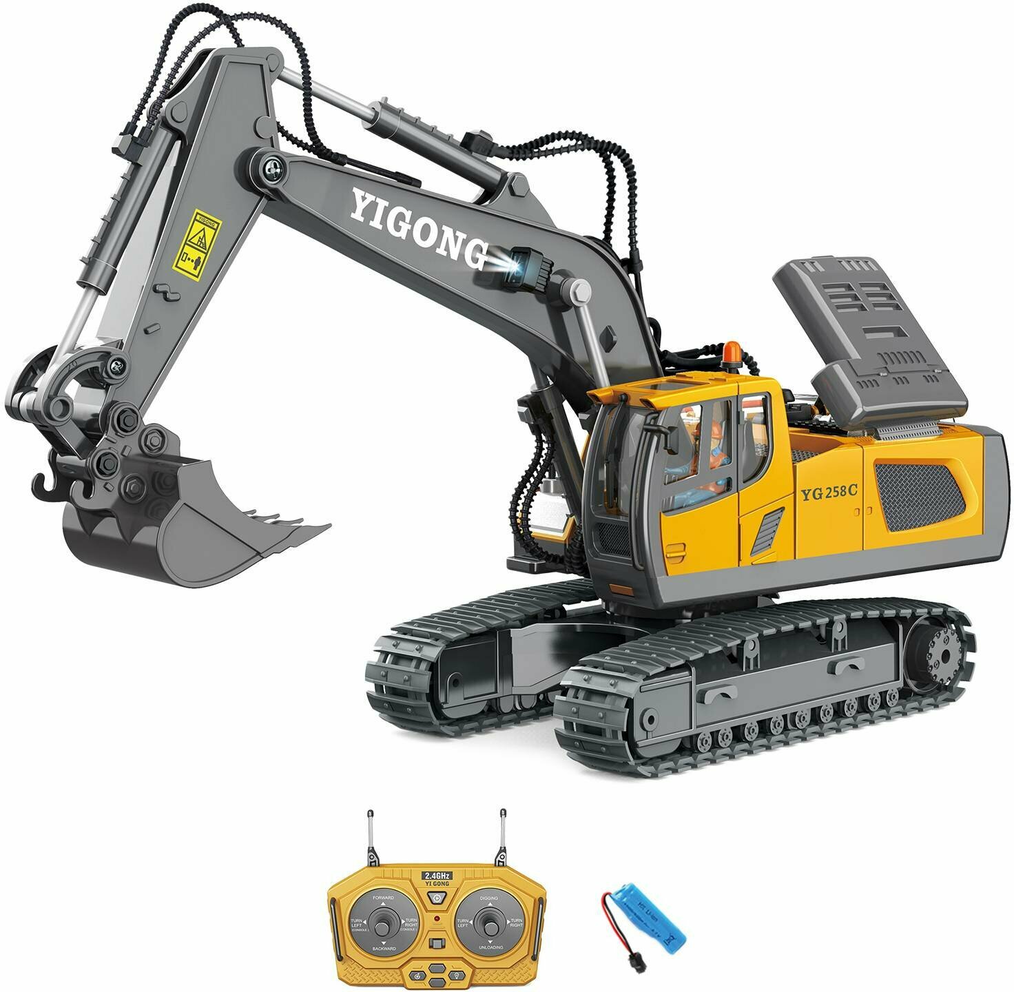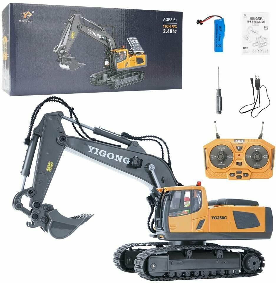 10 цен на Радиоуправляемый экскаватор Huina / YiCong (свет, звук, металл ковш, акб, 1:20) - BC1043