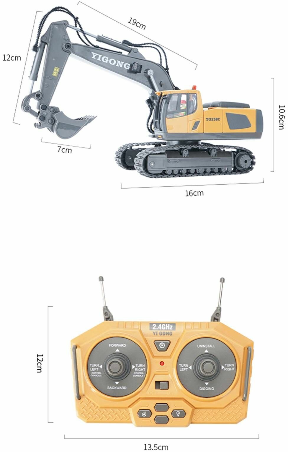 Радиоуправляемый экскаватор Huina / YiCong (свет, звук, металл ковш, акб, 1:20) - BC1043 информация: