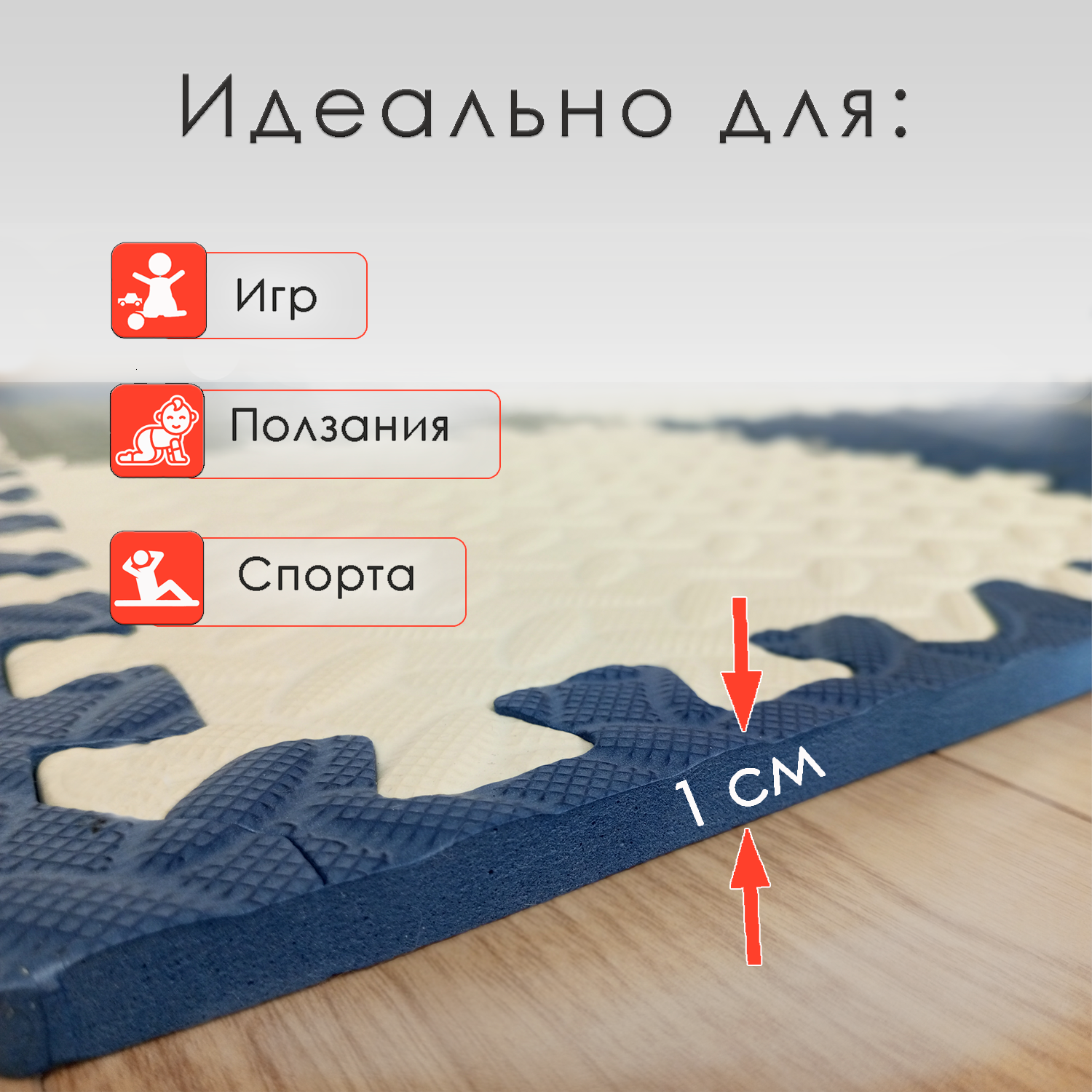 10 цен на Коврик пазл детский развивающий игровой складной модульный для ползания детей синий/белый/серый
