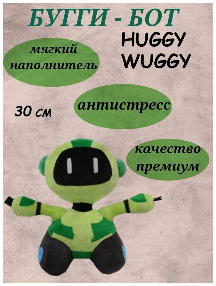 Отзывы на Игрушка робот 30 см, бугги бот зеленый 30 см, плюшевая игрушка, поппи плейтайм, робот Хагги Вагги, персонаж компьютерной игры