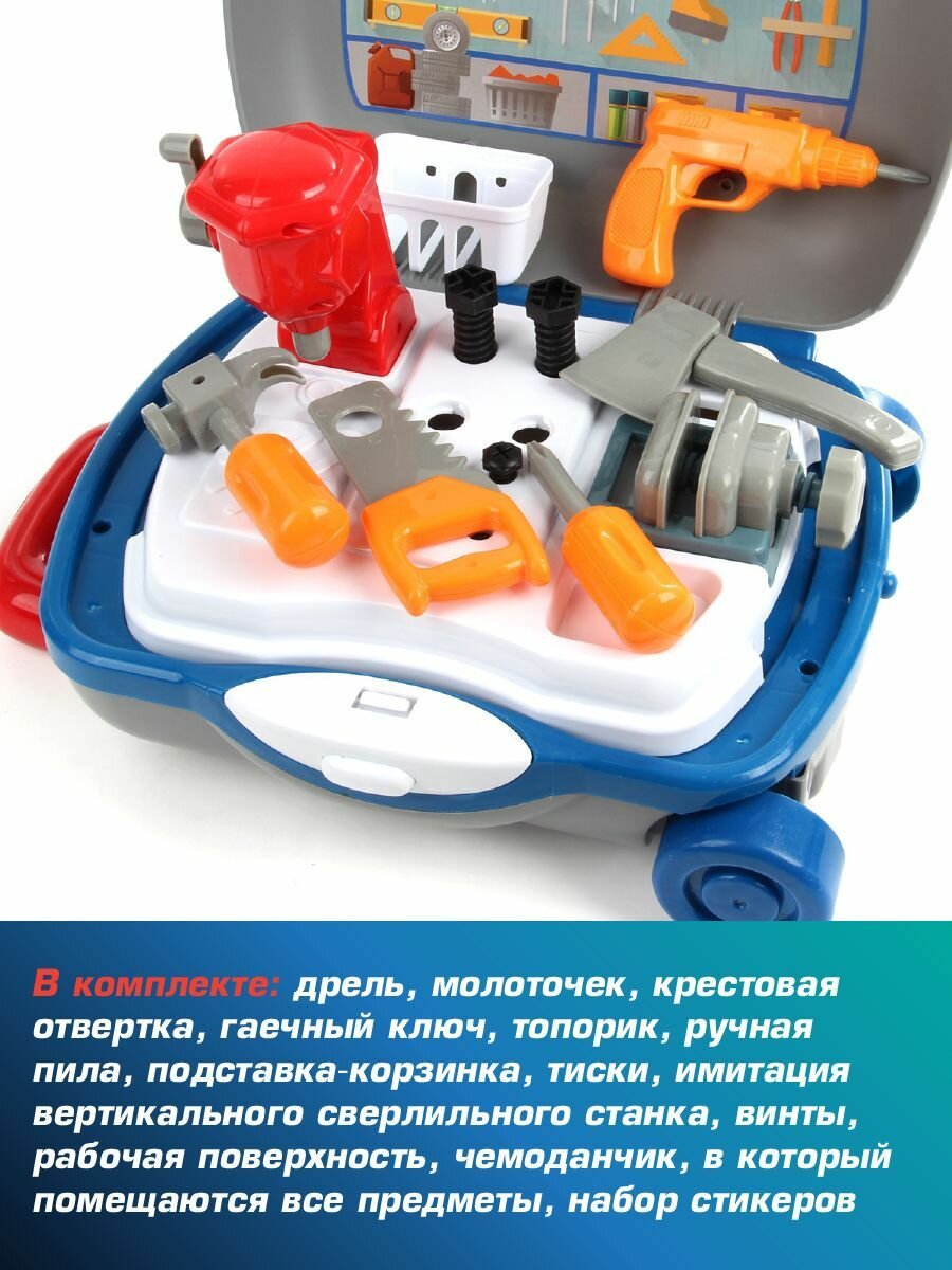 Игровой набор инструментов для мальчиков 30 предметов, Veld Co / Детская мастерская, стол верстак / Чемодан, ящик с инструментами для детей информация: