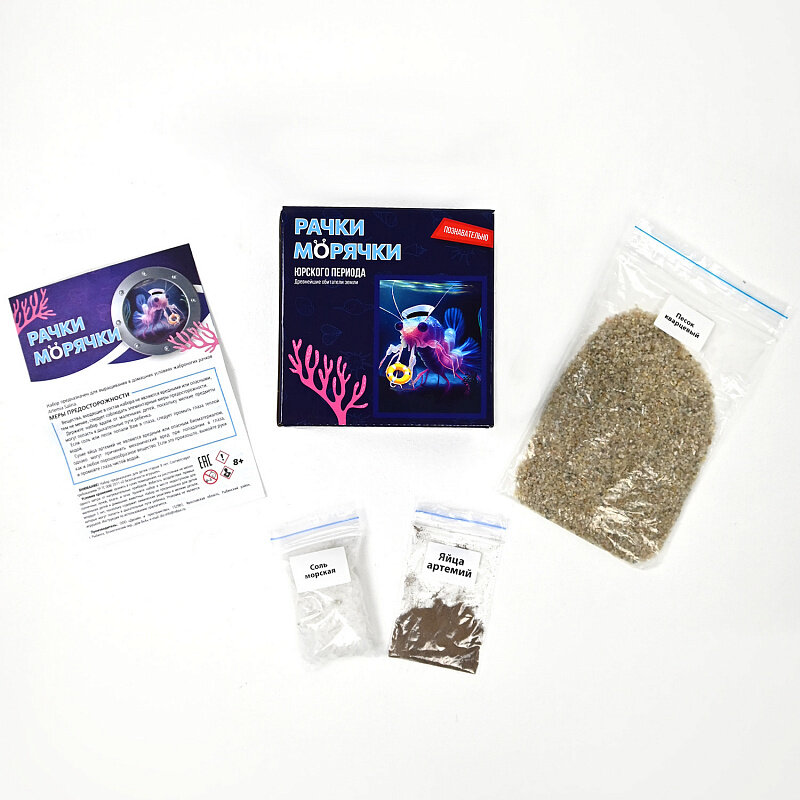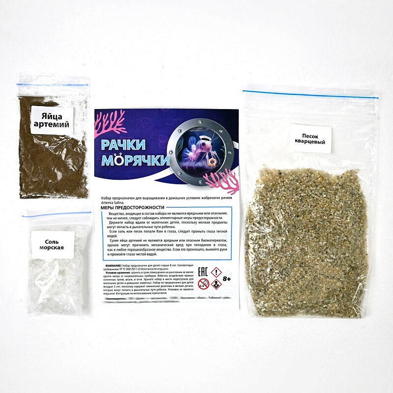 | Дополнительная информация | Состав набора: Морская соль, песок, яйца Artemia Salina, инструкция |