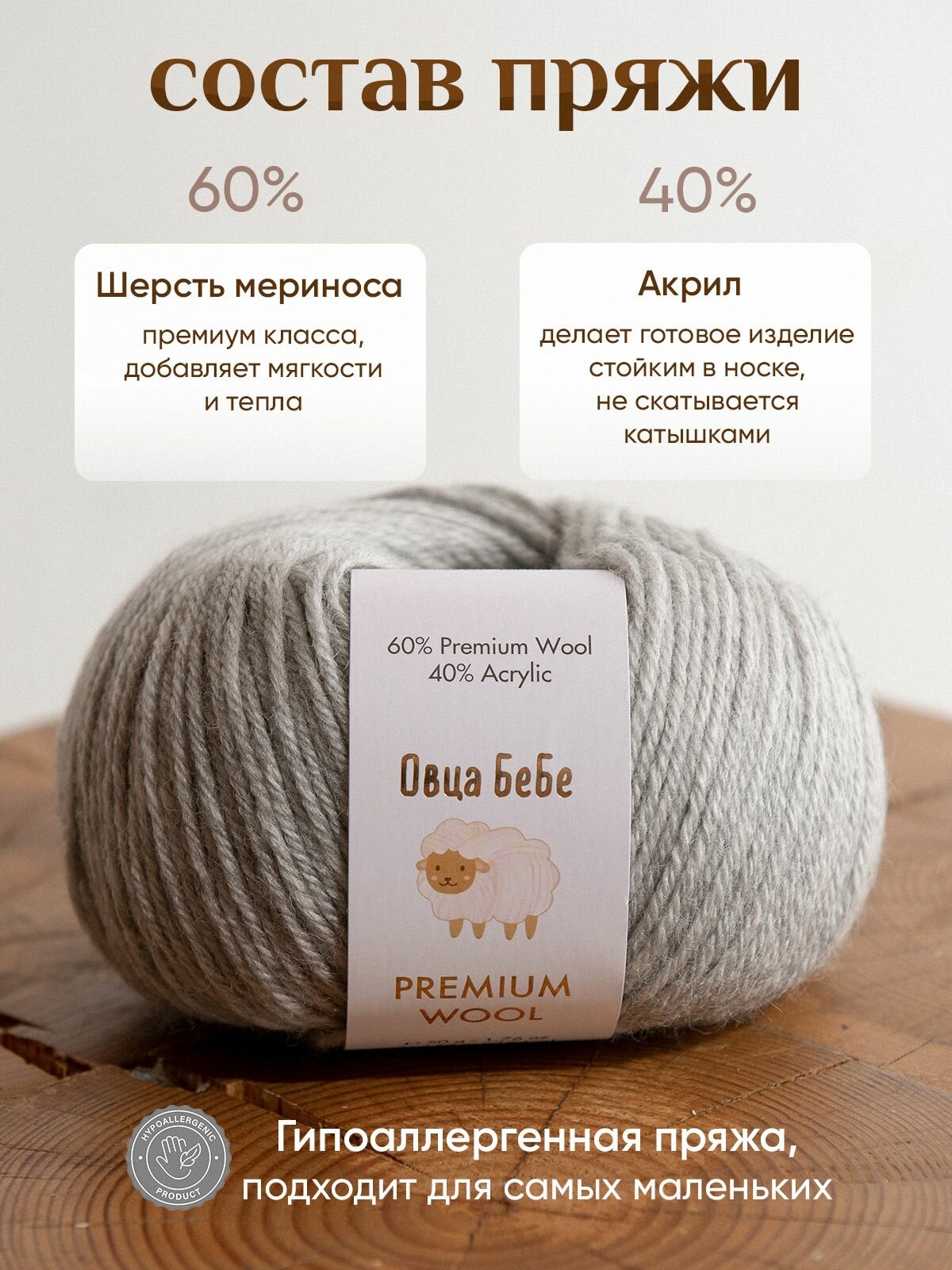 | Состав | 60% шерсть / 40% акрил |