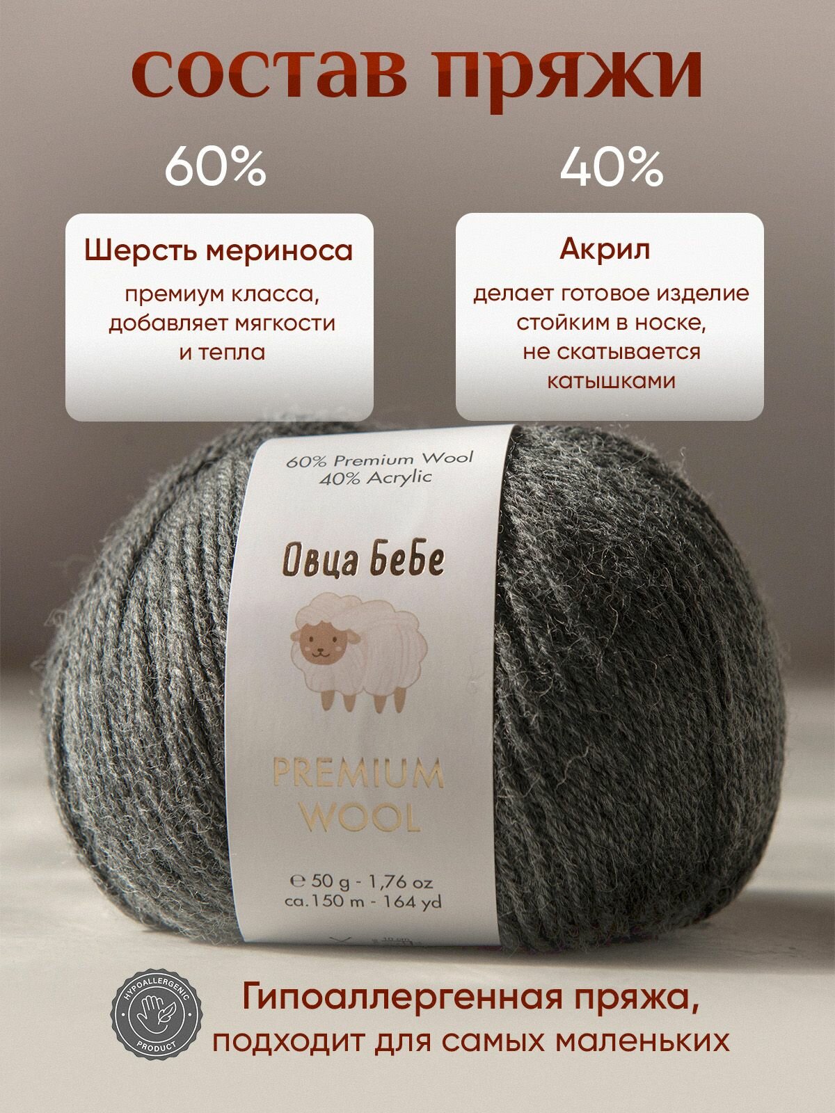 Отзывы на Пряжа для вязания Premium Wool шерсть, цвет стальной (набор из 2шт)