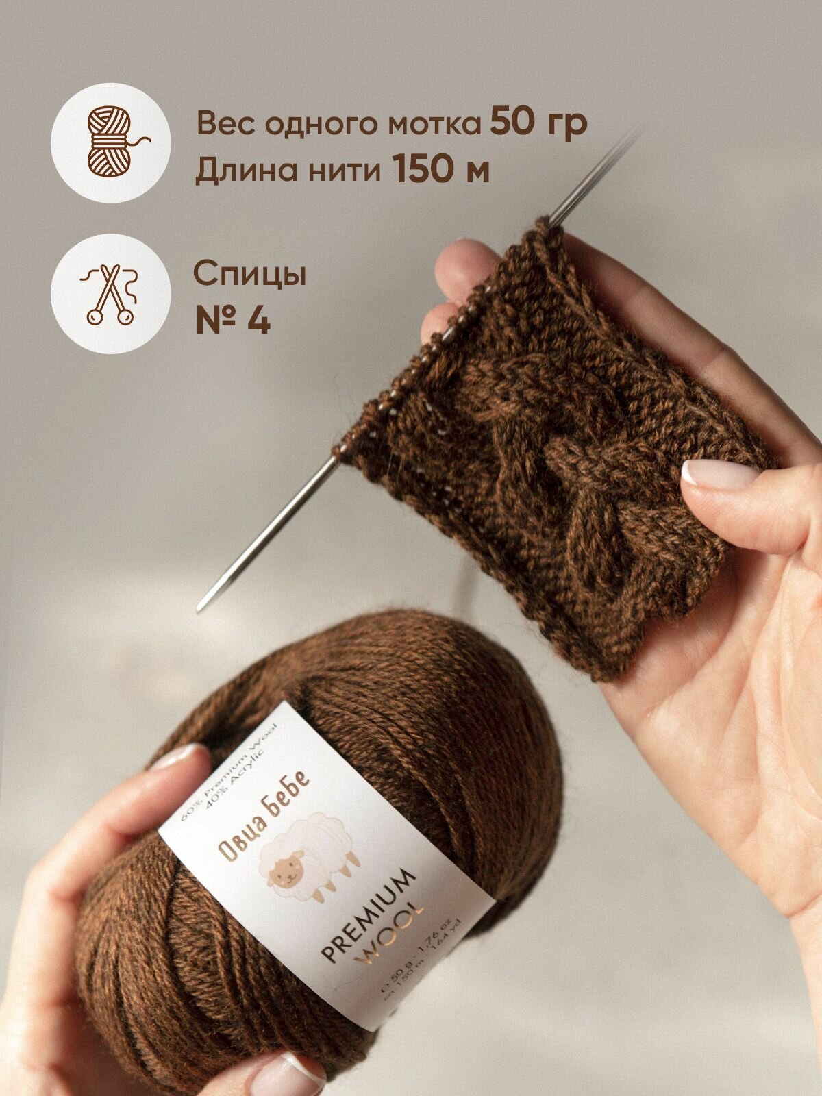 Отзывы на Пряжа для вязания Premium Wool шерсть, цвет каштан (набор из 5шт)