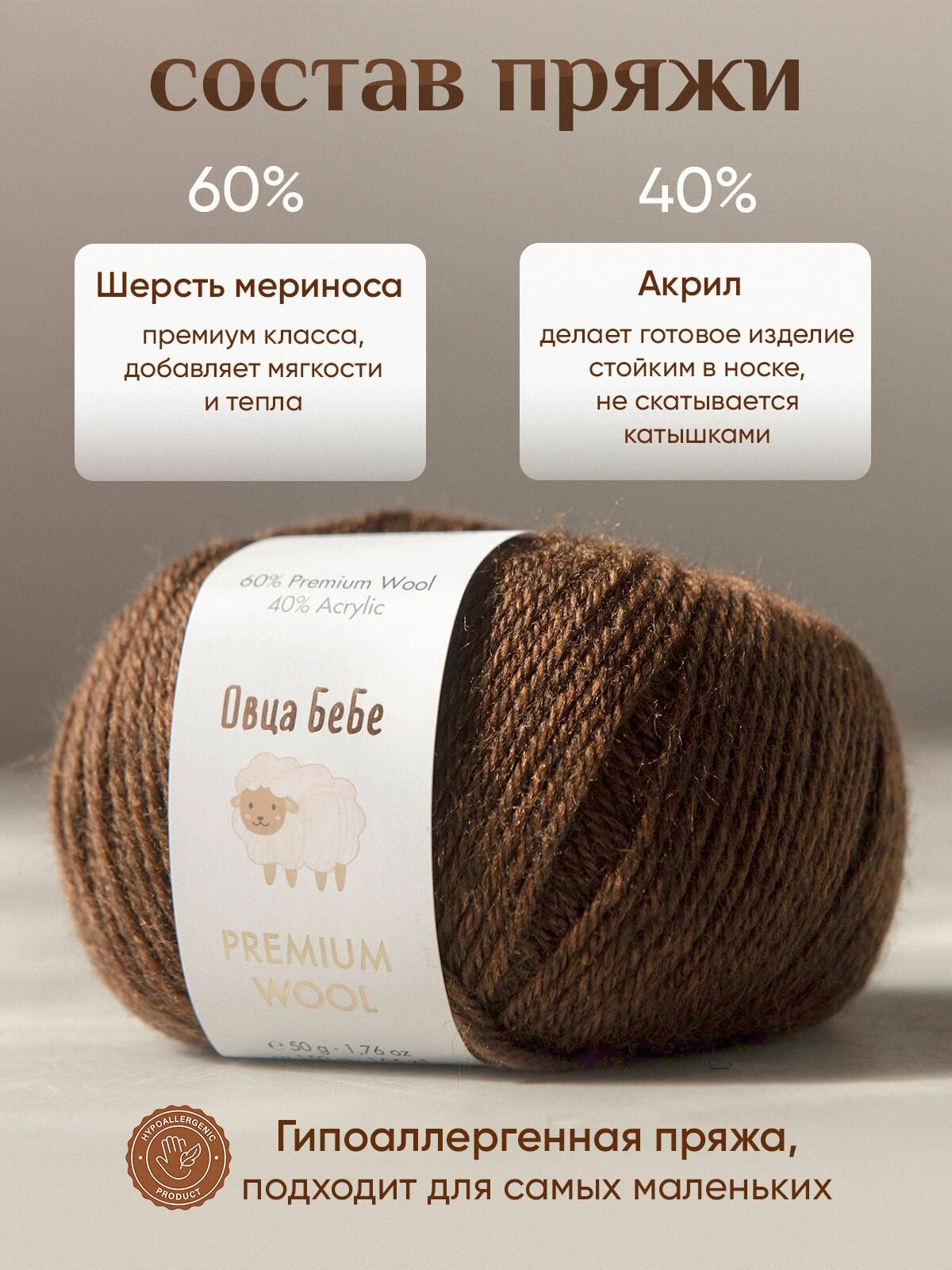 | Состав | 60% шерсть / 40% акрил |