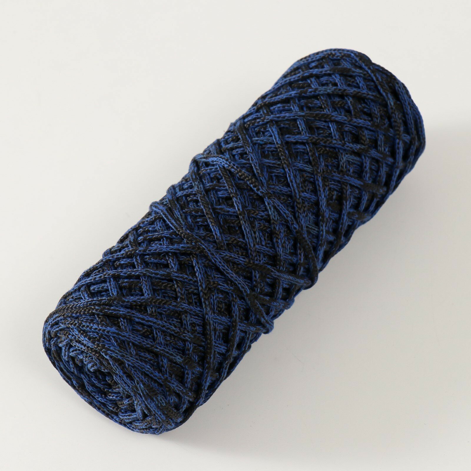 Отзывы на Шнур для вязания 35% хлопок,65% полипропилен 3 мм 85м/160±10 гр (Сапфир/черный)
