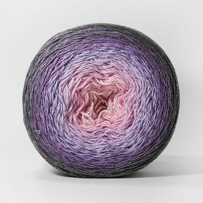 10 цен на Пряжа YarnArt Flowers Moonlight темно серый-сирень-св.розовый (3276), 53%хлопок/43%акрил/4%металлик, 1000м, 260г, 2шт