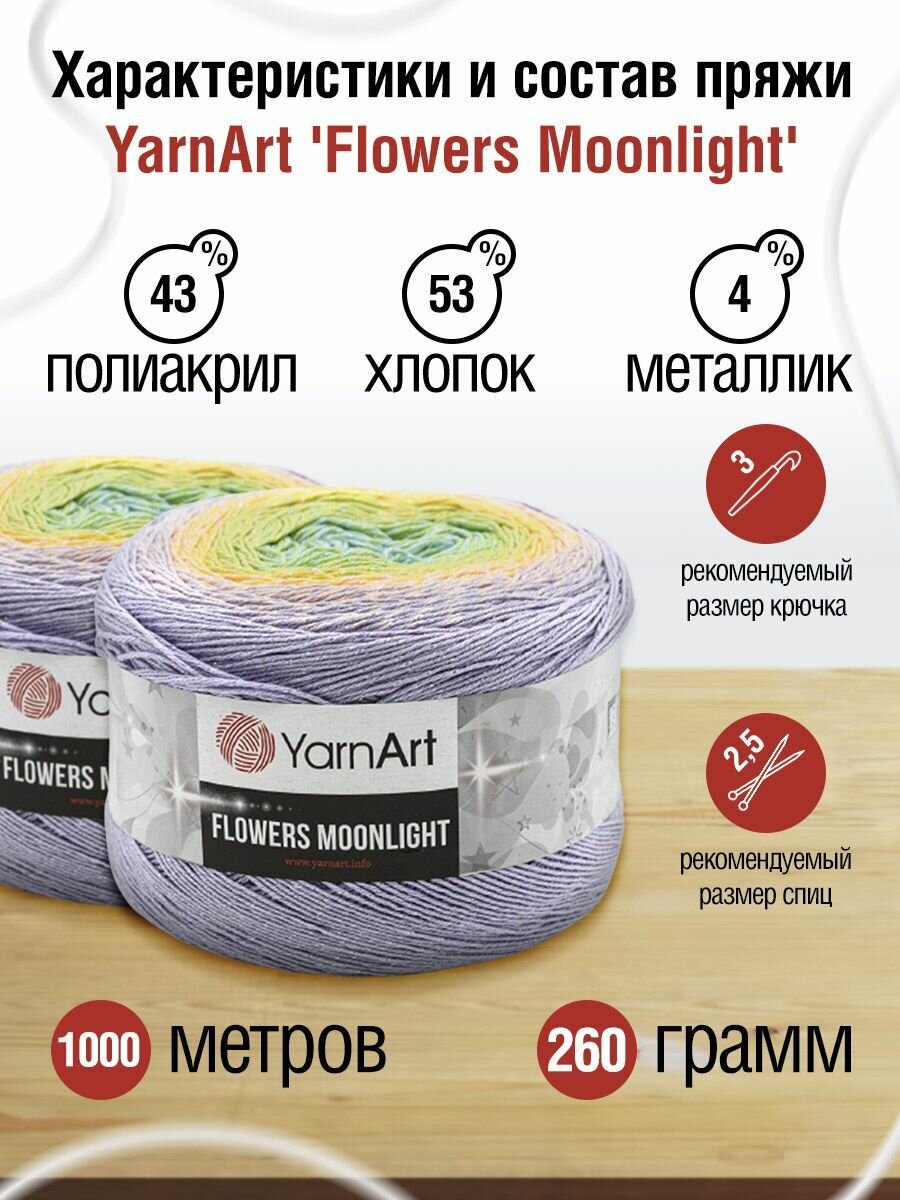 Пряжа для вязания YarnArt 'Flowers Moonlight', 260г, 1000м (53% хлопок, 43% полиакрил, 4% металлик) (3285 секционный), 2 мотка информация:
