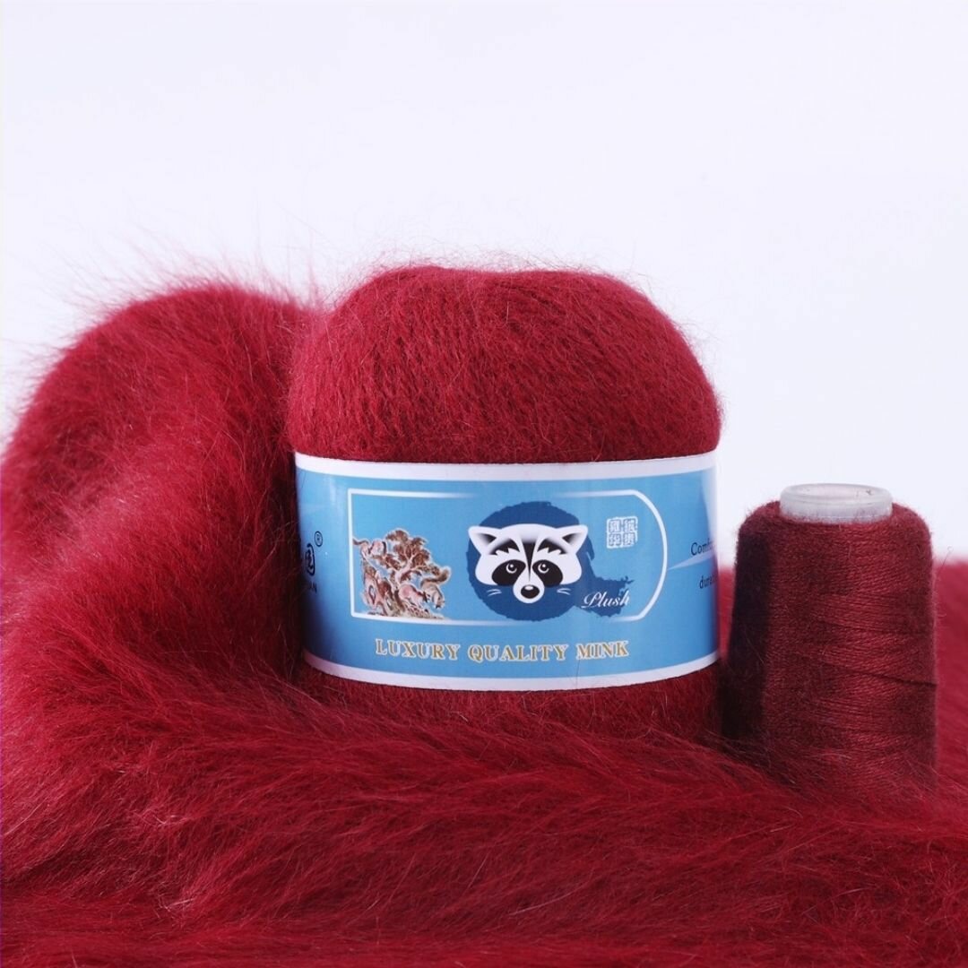Отзывы на Пряжа Пух норки - 5 мотков 50гр/350м + 5 мотков добавочной нити, цвет 830 вишня , синяя этикетка