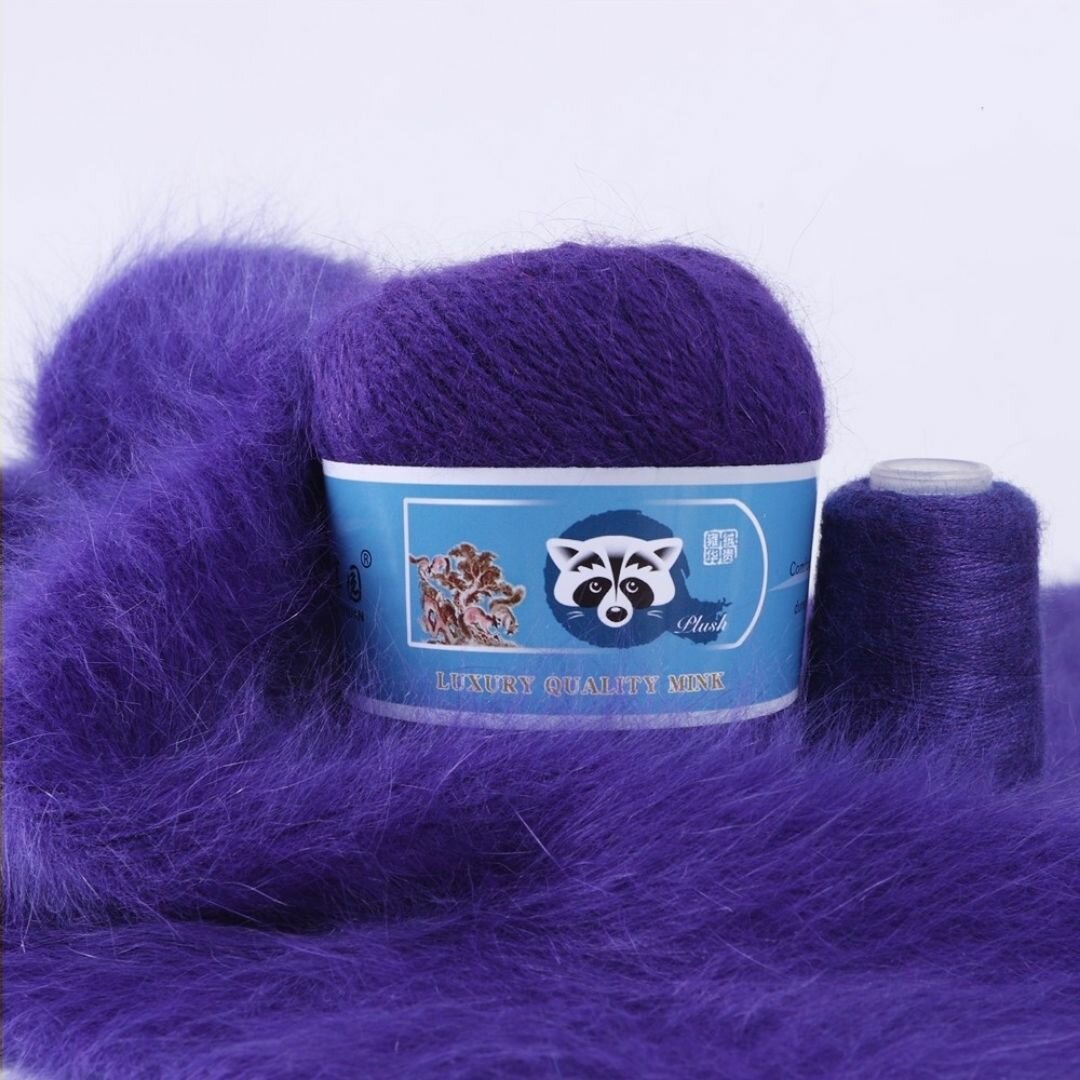 Отзывы на Пряжа Пух норки - 5 мотков 50гр/350м + 5 мотков добавочной нити, цвет 818 фиолетовый, синяя этикетка