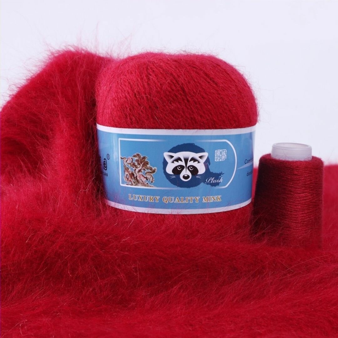 Отзывы на Пряжа Пух норки - 5 мотков 50гр/350м + 5 мотков добавочной нити, цвет 817 рубиновый , синяя этикетка