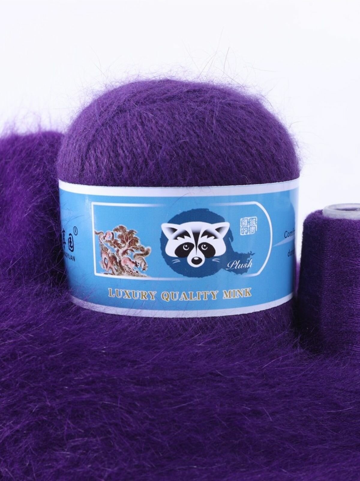 Отзывы на Пряжа Пух норки - 5 мотков 50гр/350м + 5 мотков добавочной нити, цвет 823 темно фиолетовый, синяя этикетка