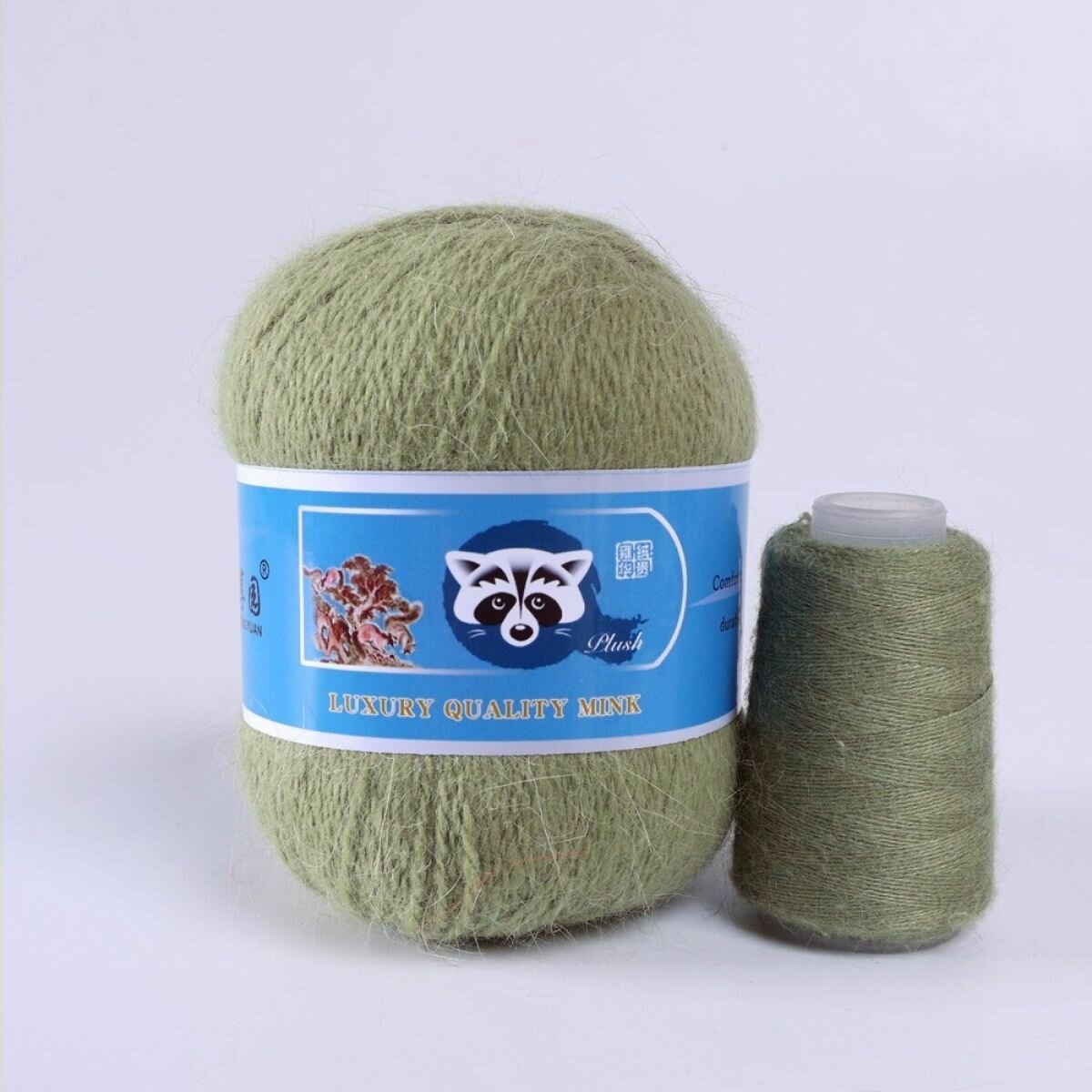 Пряжа Пух норки - 5 мотков 50гр/350м + 5 мотков добавочной нити, цвет 870 фисташка , синяя этикетка информация: