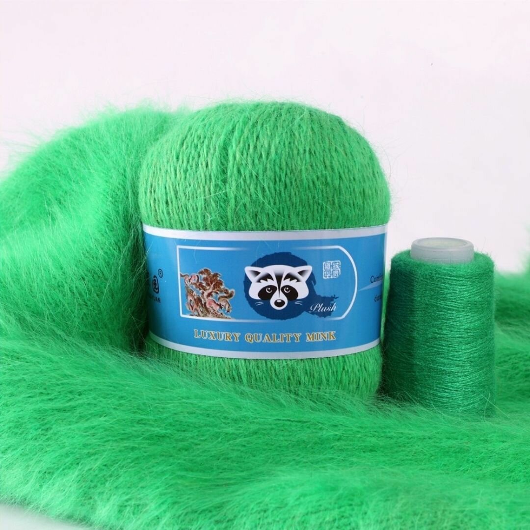 Отзывы на Пряжа Пух норки - 5 мотков 50гр/350м + 5 мотков добавочной нити, цвет 827 зелёный, синяя этикетка