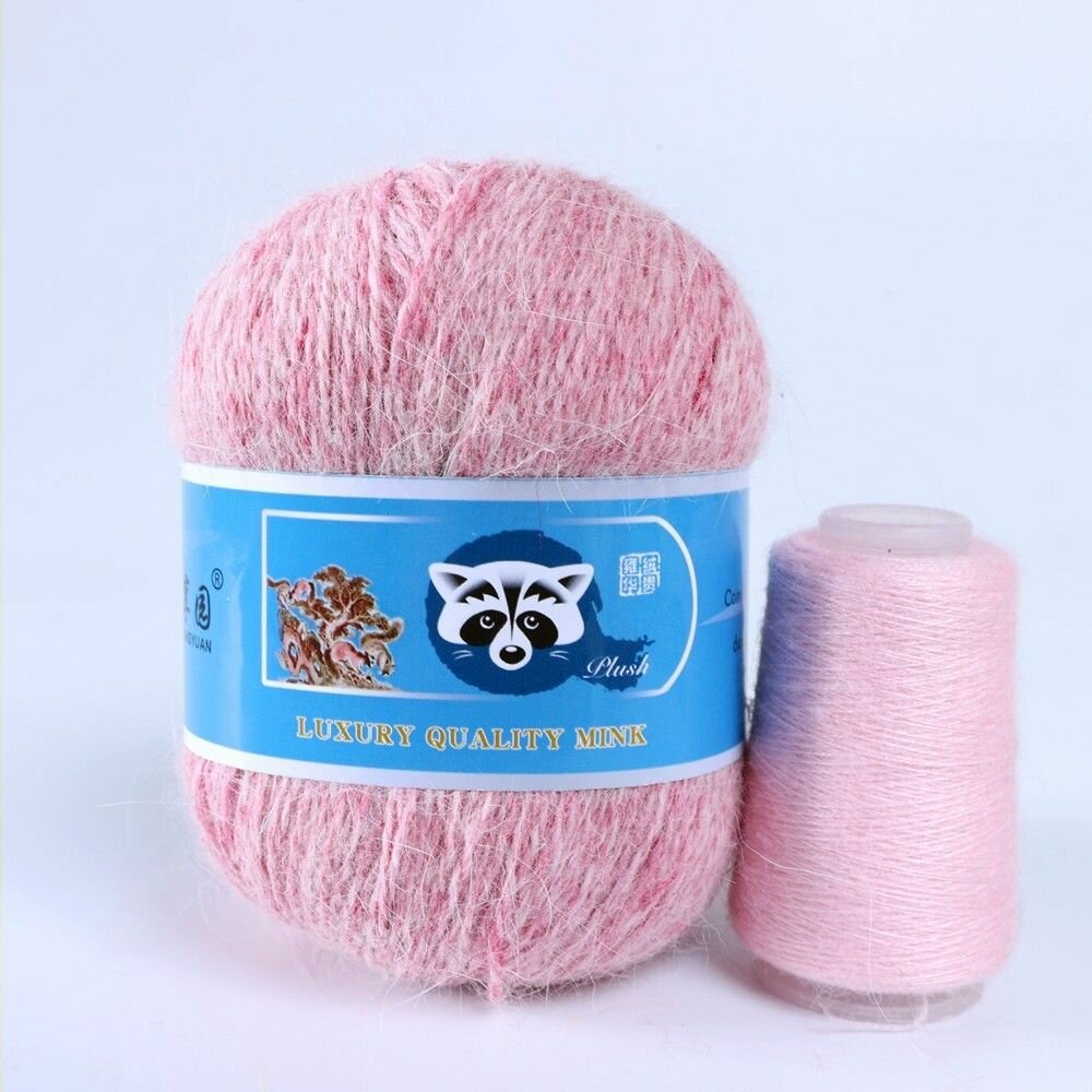 Отзывы на Пряжа Пух норки - 5 мотков 50гр/350м + 5 мотков добавочной нити, цвет 859 пудра меланж, синяя этикетка