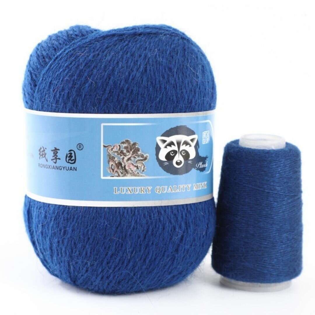 Пряжа Пух норки - 5 мотков 50гр/350м + 5 мотков добавочной нити, цвет 842 тёмно-синий , синяя этикетка 1 850 ₽