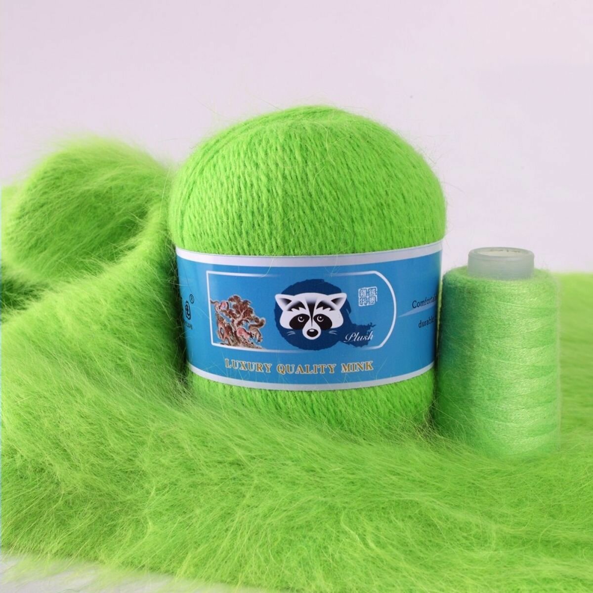 Отзывы на Пряжа Пух норки - 5 мотков 50гр/350м + 5 мотков добавочной нити, цвет 867 ярко-салатовый , синяя этикетка