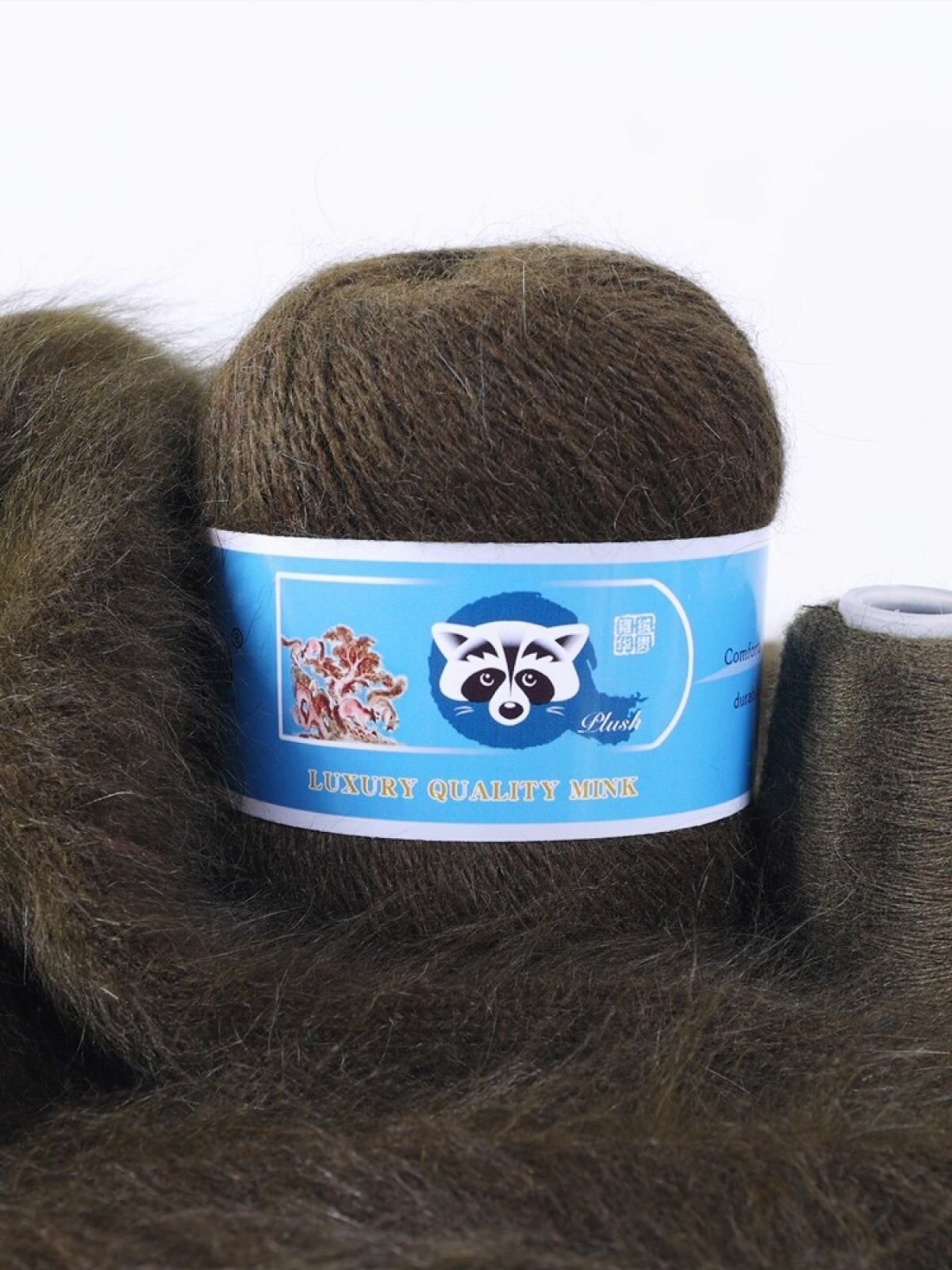 Отзывы на Пряжа Пух норки - 5 мотков 50гр/350м + 5 мотков добавочной нити, цвет 819 хаки , синяя этикетка