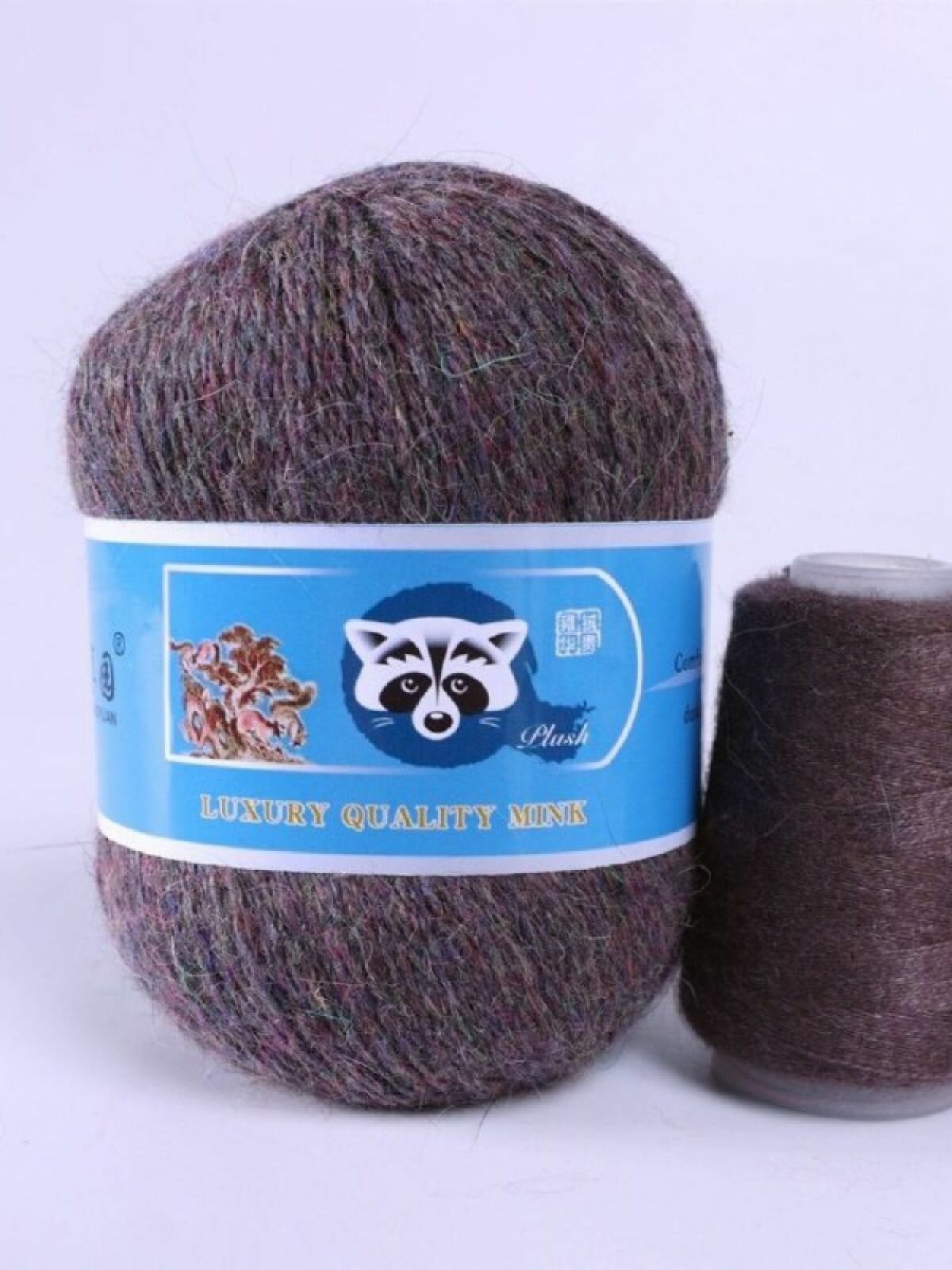 Пряжа Пух норки - 5 мотков 50гр/350м + 5 мотков добавочной нити, цвет 823 темно фиолетовый, синяя этикетка 1 553 ₽