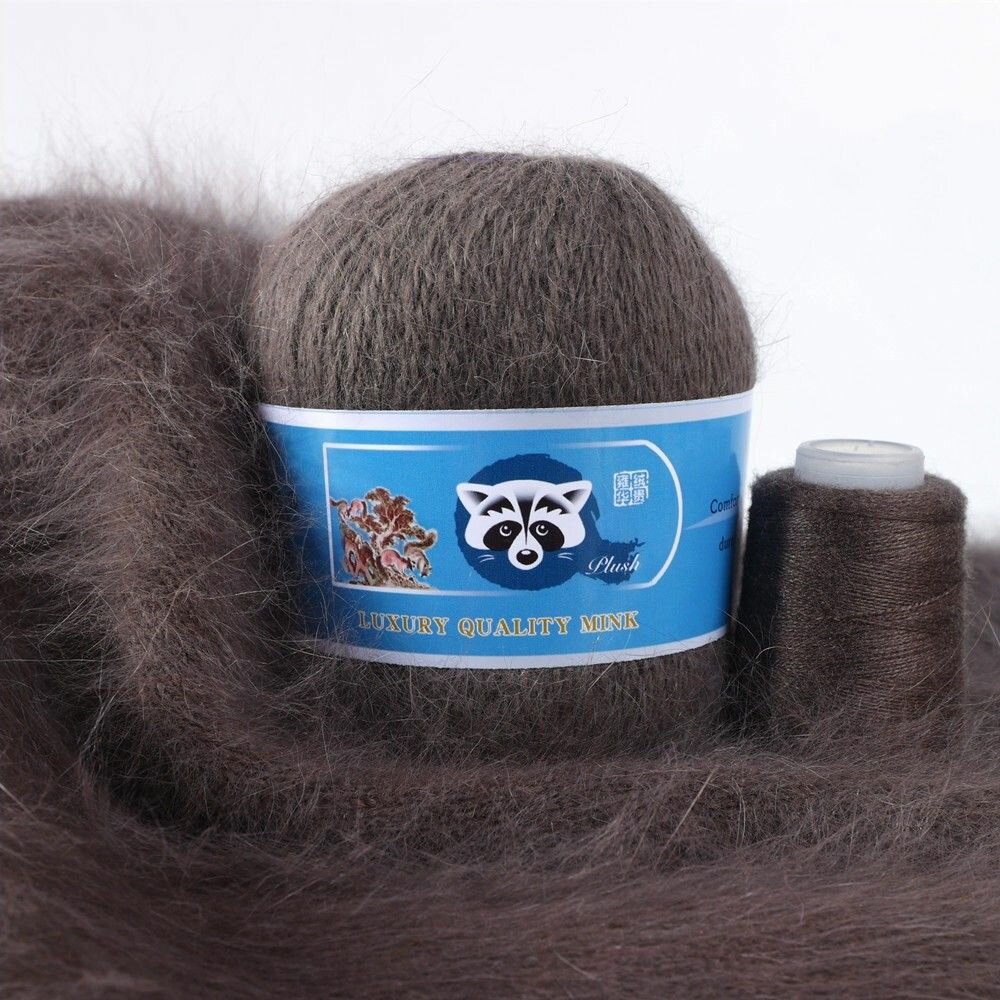 Пряжа Пух норки - 5 мотков 50гр/350м + 5 мотков добавочной нити, цвет 854 коричневый , синяя этикетка 1 850 ₽