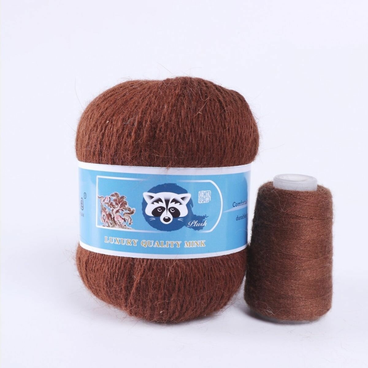 Пряжа Пух норки - 5 мотков 50гр/350м + 5 мотков добавочной нити, цвет 854 коричневый , синяя этикетка информация: