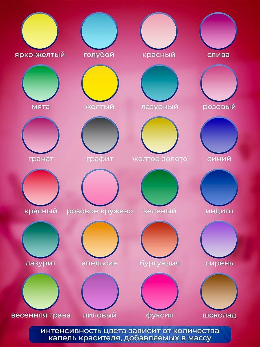 | Комплектация | красители для мыла и воска 24 цвета по 10 мл |
