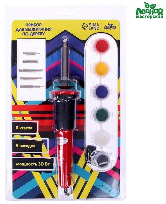 10 цен на Прибор для выжигания по дереву, 6 красок + 5 насадок Лесная мастерская 9130036 .
