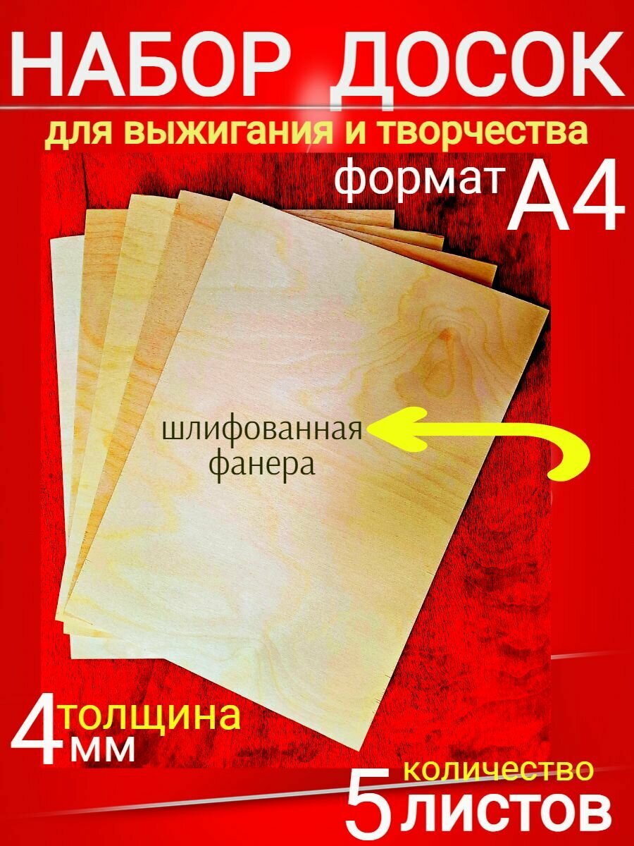 Фанера для выжигания 5 штук, толщина 4 мм, формат А4 информация: