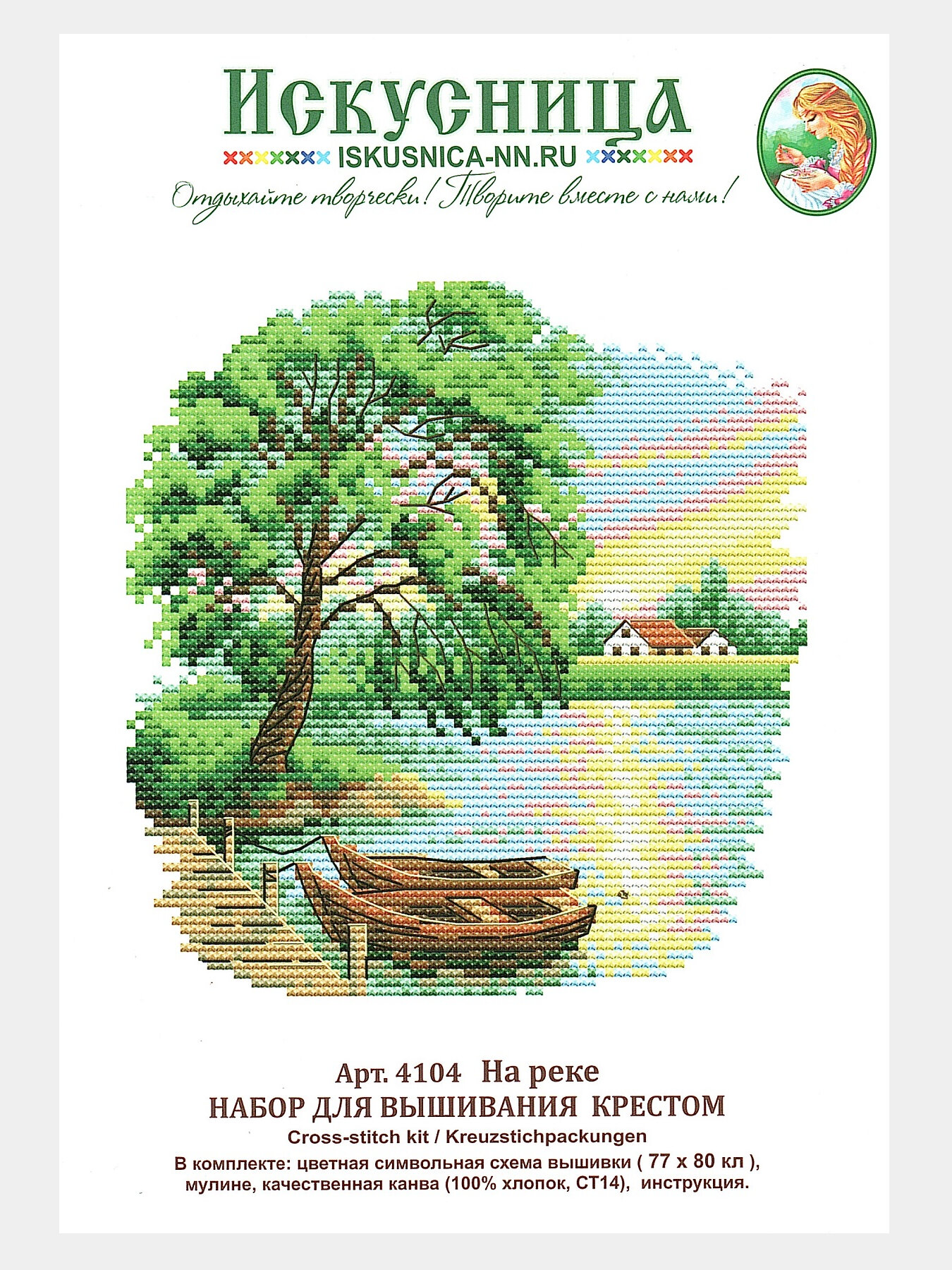10 цен на Набор для вышивания крестом схема цветная символьная Искусница, картина, На реке, 14*15см