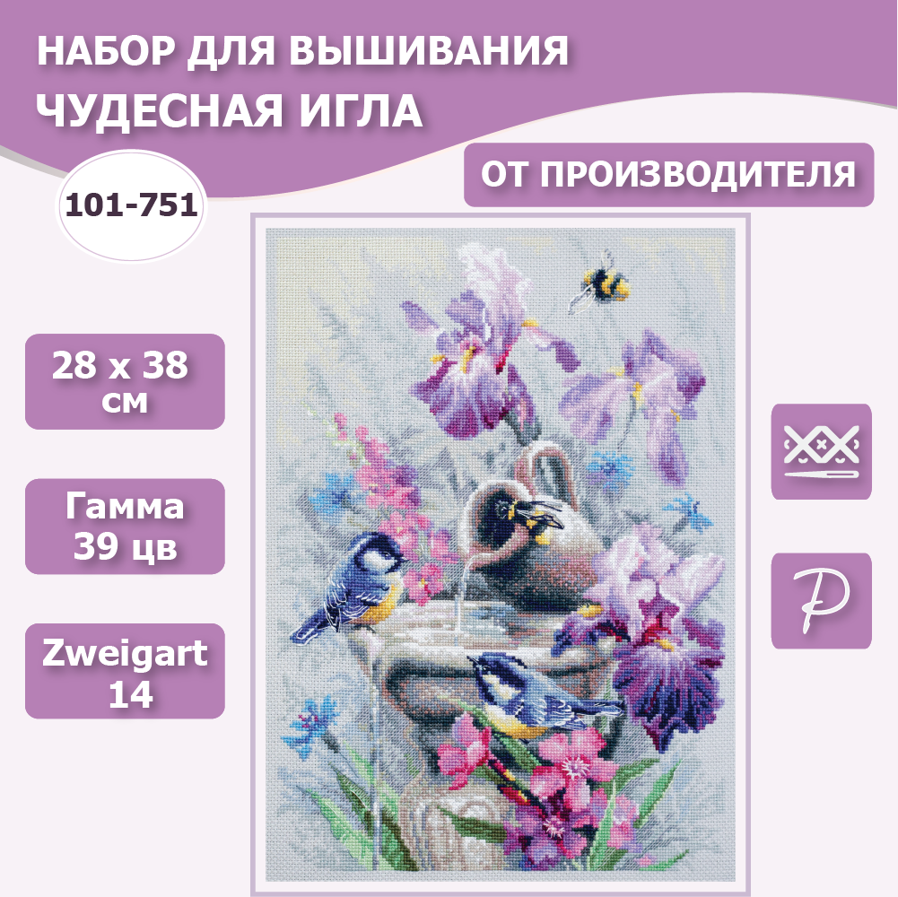 Набор для вышивания Чудесная игла 101-751 "Синицы у фонтана" 28*38 см информация: