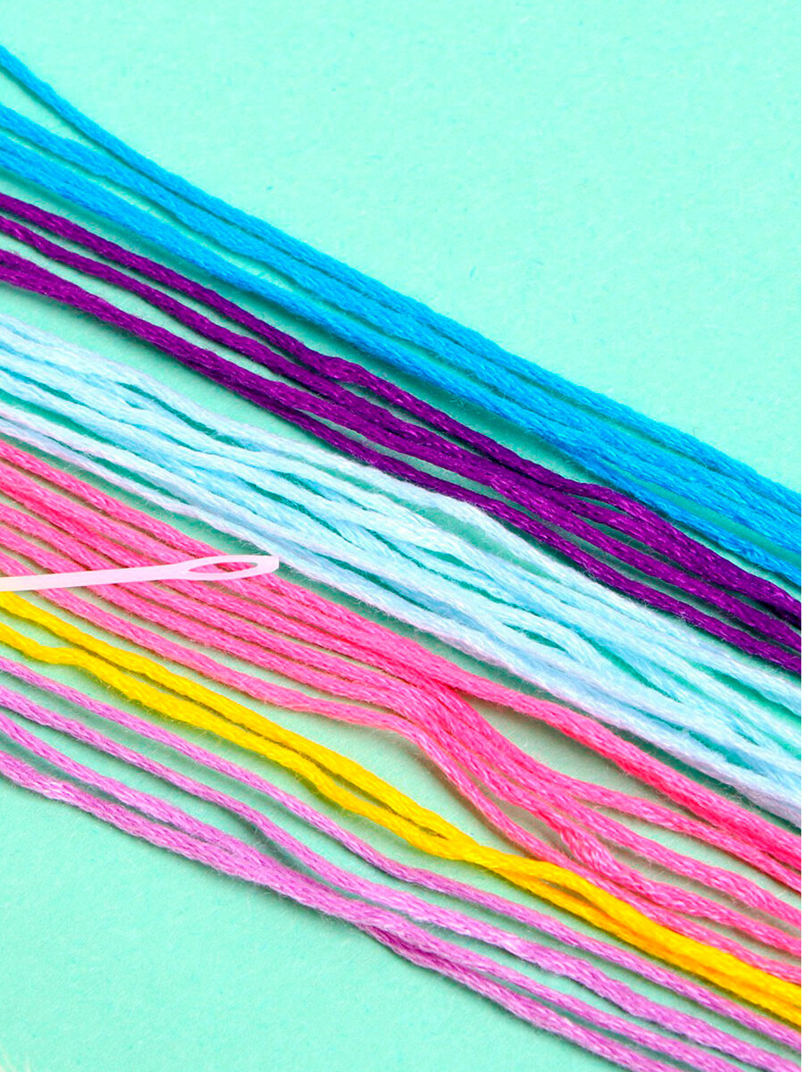 Вышивка пряжей «Снеговик» на картоне с пластиковой иглой